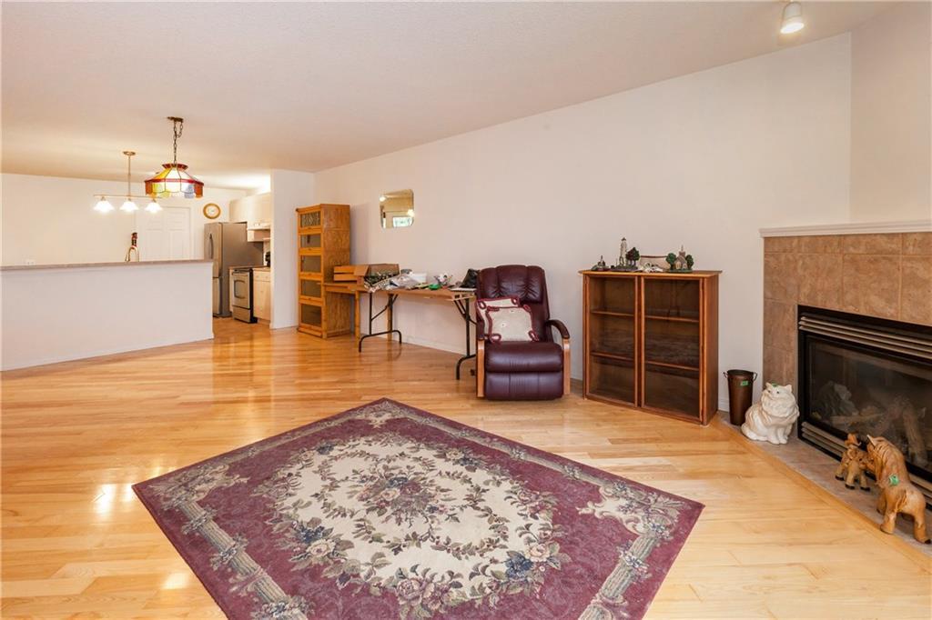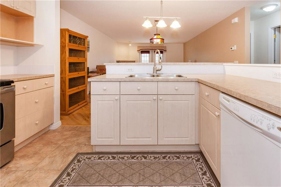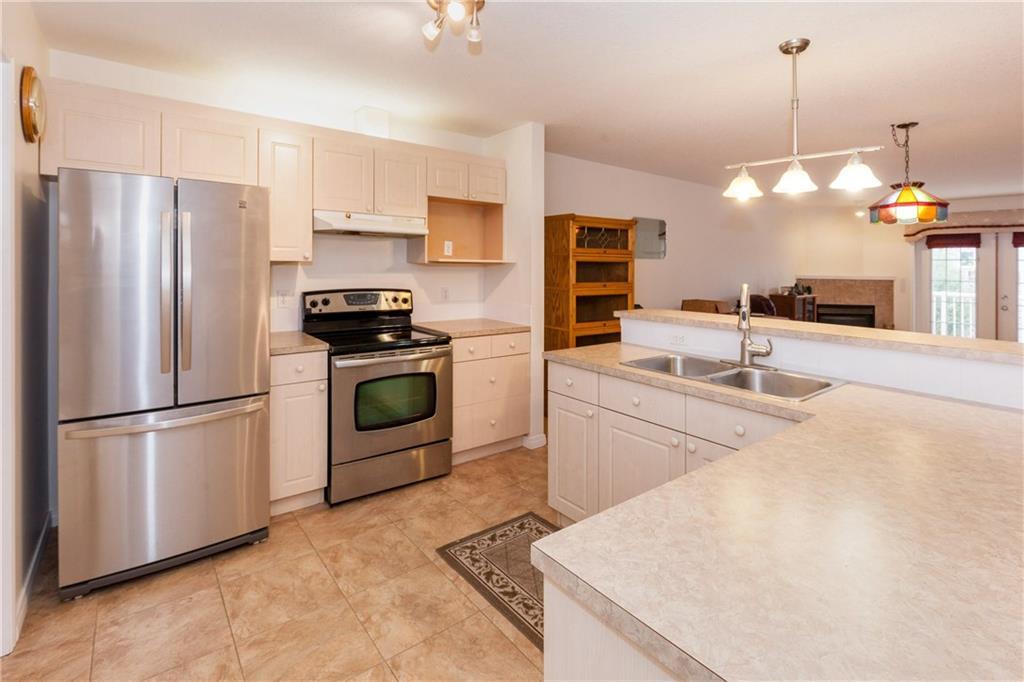 WELCOME TO THIS LOVELY END UNIT BUNGALOW with DOUBLE ATTACHED GARAGE in the Desirable Golf Course community of THE FAIRWAYS. This Condominium complex is age restricted to 19 years or older. This home offers a GREAT FLOOR PLAN with 2 Bedrooms, a 4-piece main bathroom, Kitchen with raised breakfast bar, dining area, Living room with corner fireplace and main floor laundry. The basement is unfinished and awaits your design. The backyard features a good sized private deck, lawns and flower gardens . The attached double garage is insulated and dry walled. Close to all amenities including shopping, recreation & transit.