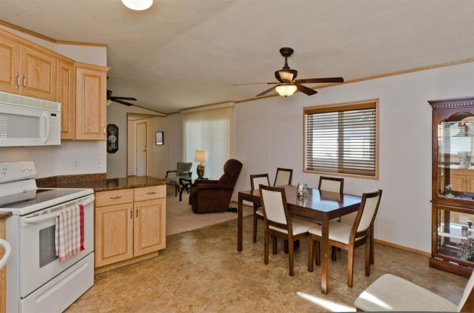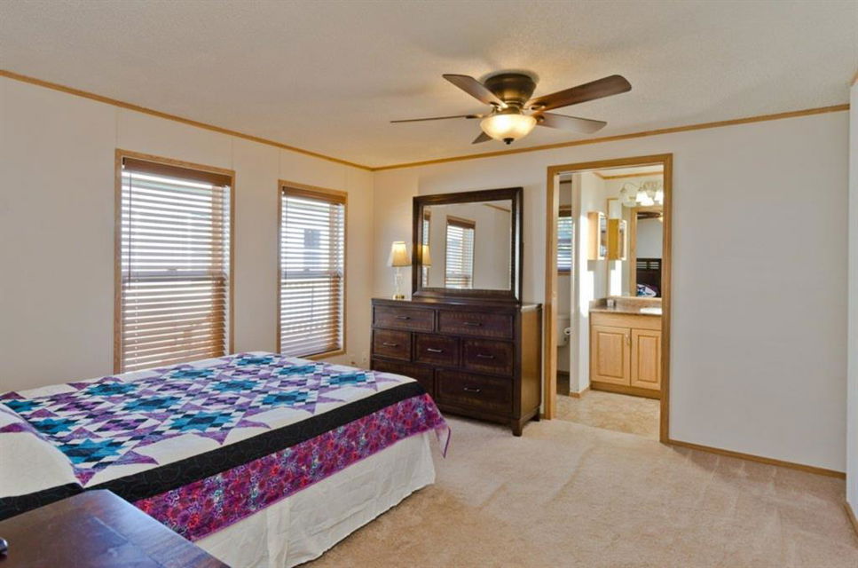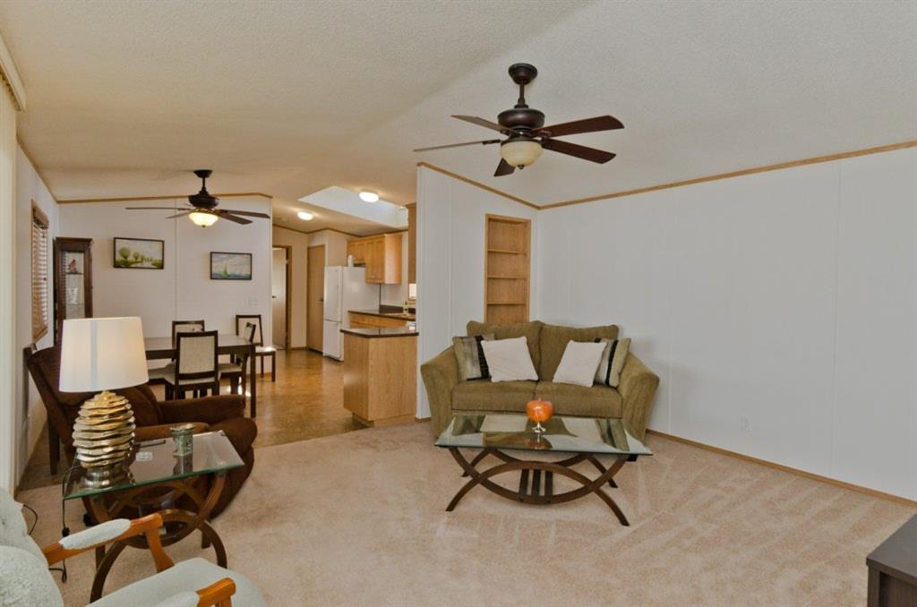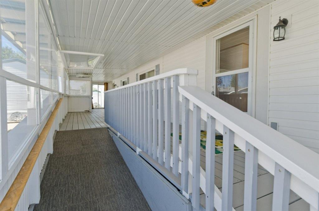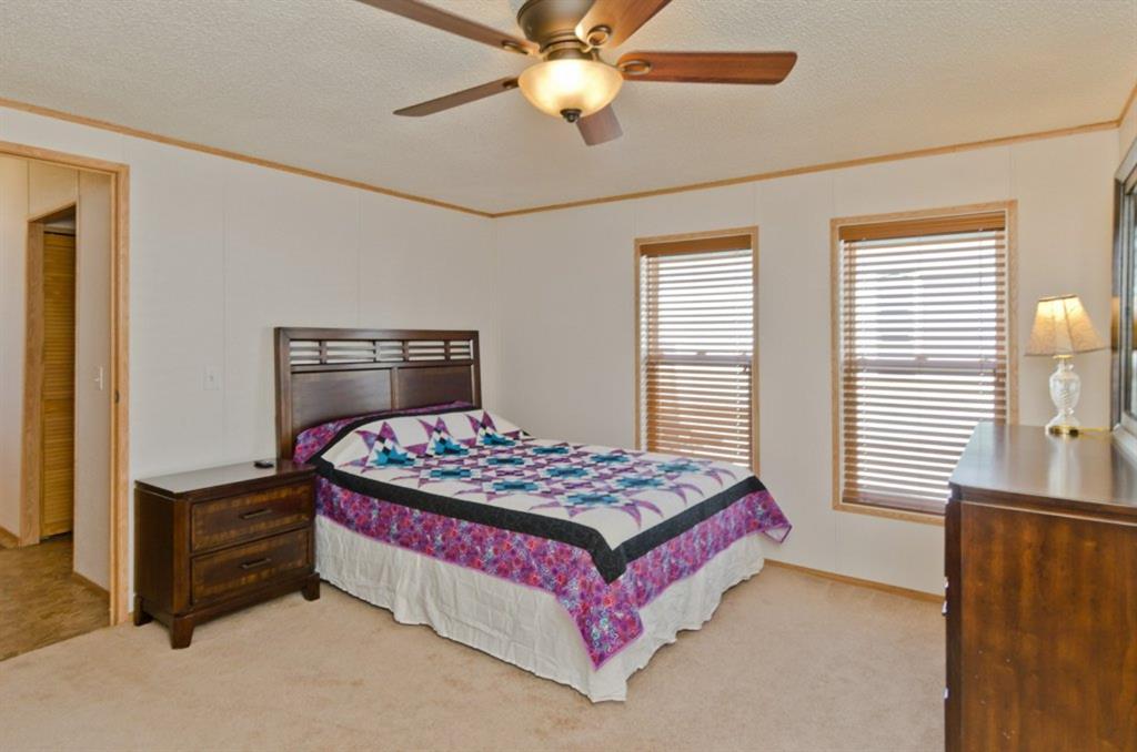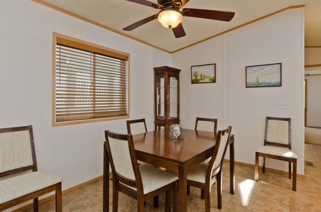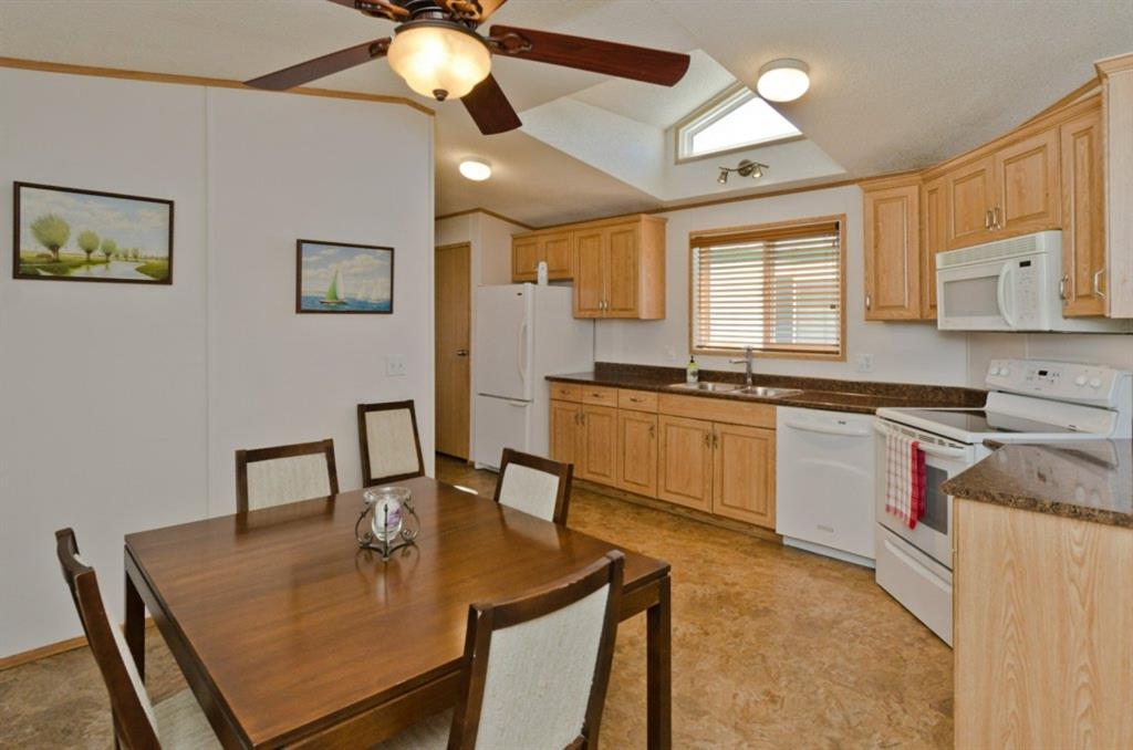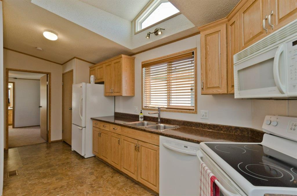 Welcome to the Gated Community of Ranch Estates in Strathmore. Centrally located and close to all amenities, this park is very well maintained and all properties show pride of ownership. The features of this home are the OVERSIZED HEATED GARAGE, COVERED VERANDA, newer COUNTERTOPS, FLOORING, SHINGLES, HOT WATER TANK, 10X10 SHED, TOILETS, REMOTE CEILING FANS…and the list goes on. Super clean, and ready to move right in. The park has an active homeowners association that are always organizing fun things to do. The pad fee of $654.00/Month covers snow removal, care of the expansive lawns, electronic gate, full-time park manager, etc.