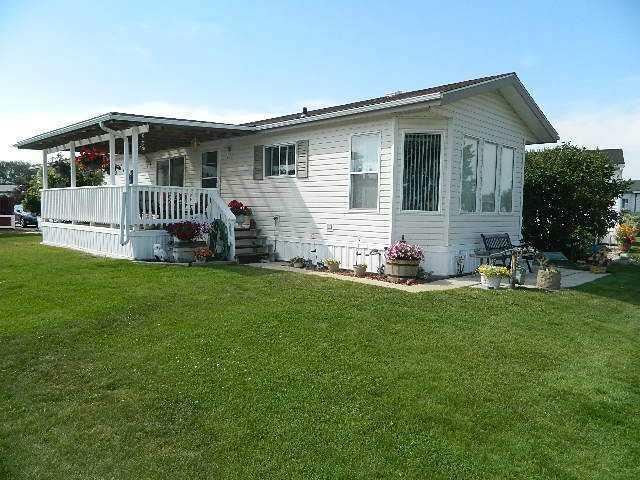 Stunning home with views to match in Strathmore’s PREMIER (40+) GATED mobile home park. This immaculate home features a spacious kitchen with an abundance of cupboards and counter space including a center island. From your kitchen table enjoy the spectacular views of the green space through the BAY window in the Kitchen. The master bedroom boasts a walk in closet, built in linen closet, an oval SOAKER tub in the ensuite. An additional bathroom with a skylight and 2nd bedroom completes this bright lovely home.