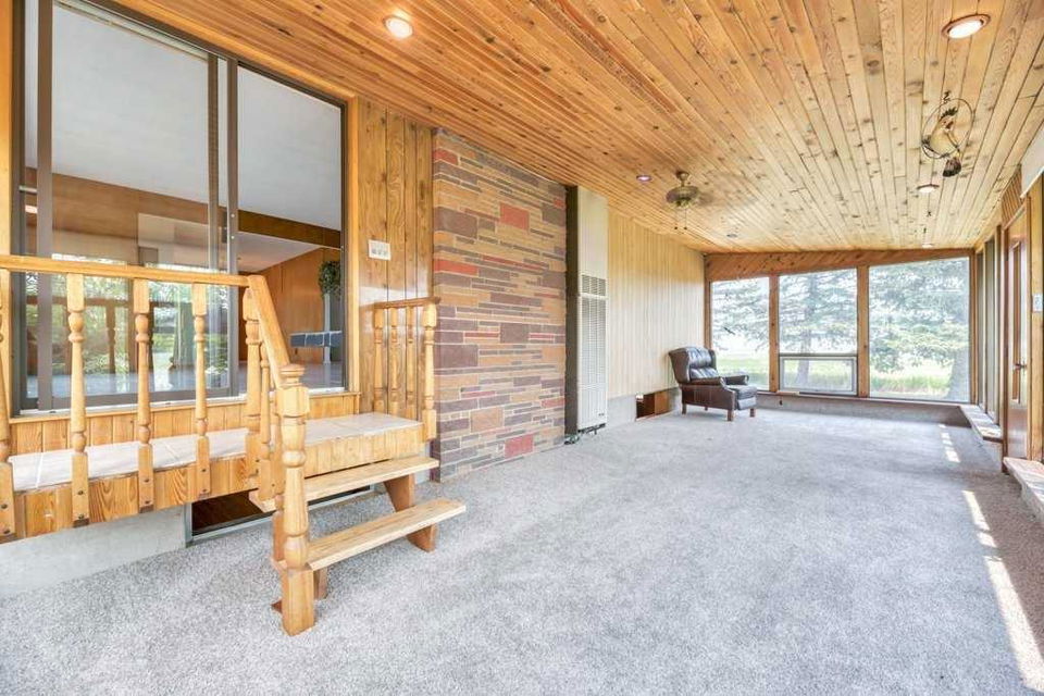 The home features a spacious floor plan with a breezeway connecting the house to the garage, a main floor laundry room with a sink, and a bright, heated sunroom with a full wall of south-facing windows. Classic wood-burning fireplaces on both the main and lower levels add charm and functionality, while a fully functioning sauna and a metal roof contribute to the home’s comfort and durability. Outdoor living is elevated by a beautifully designed outdoor gazebo with a fire pit and evening lighting, creating an ideal setting for entertaining or relaxing under the stars.