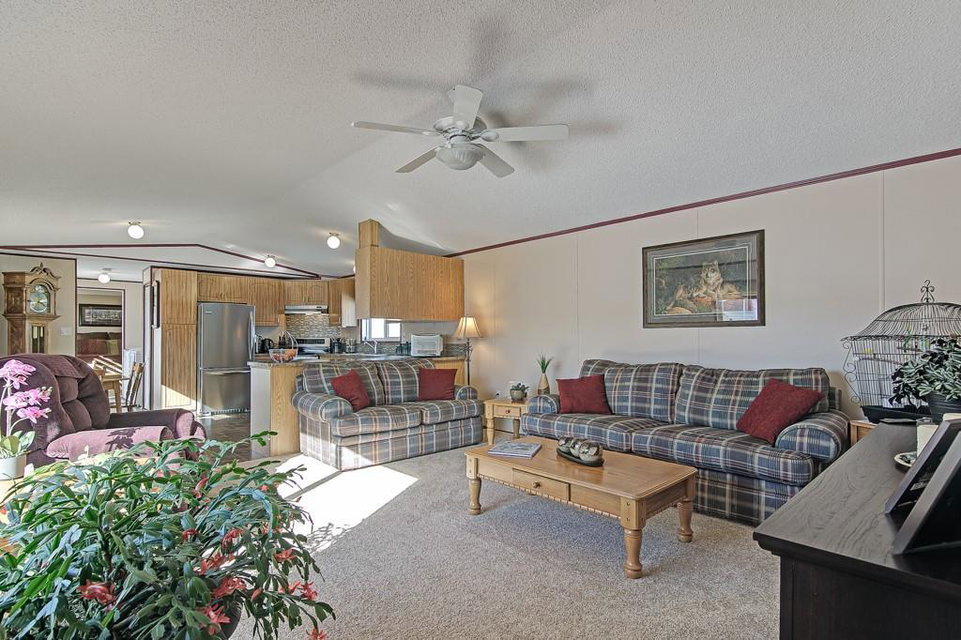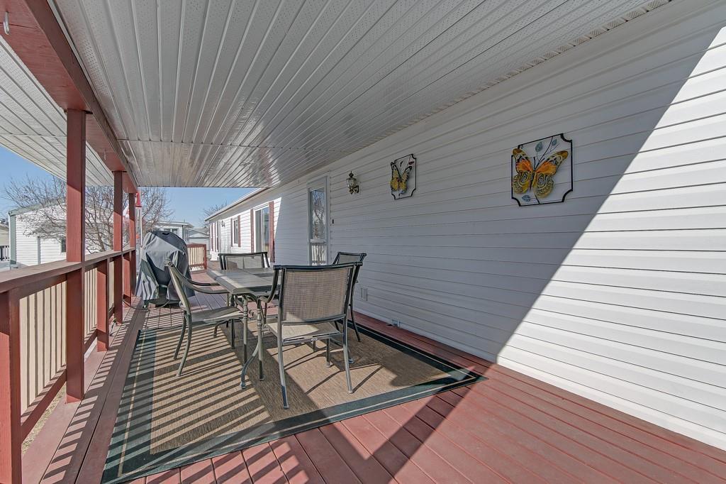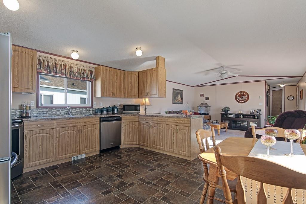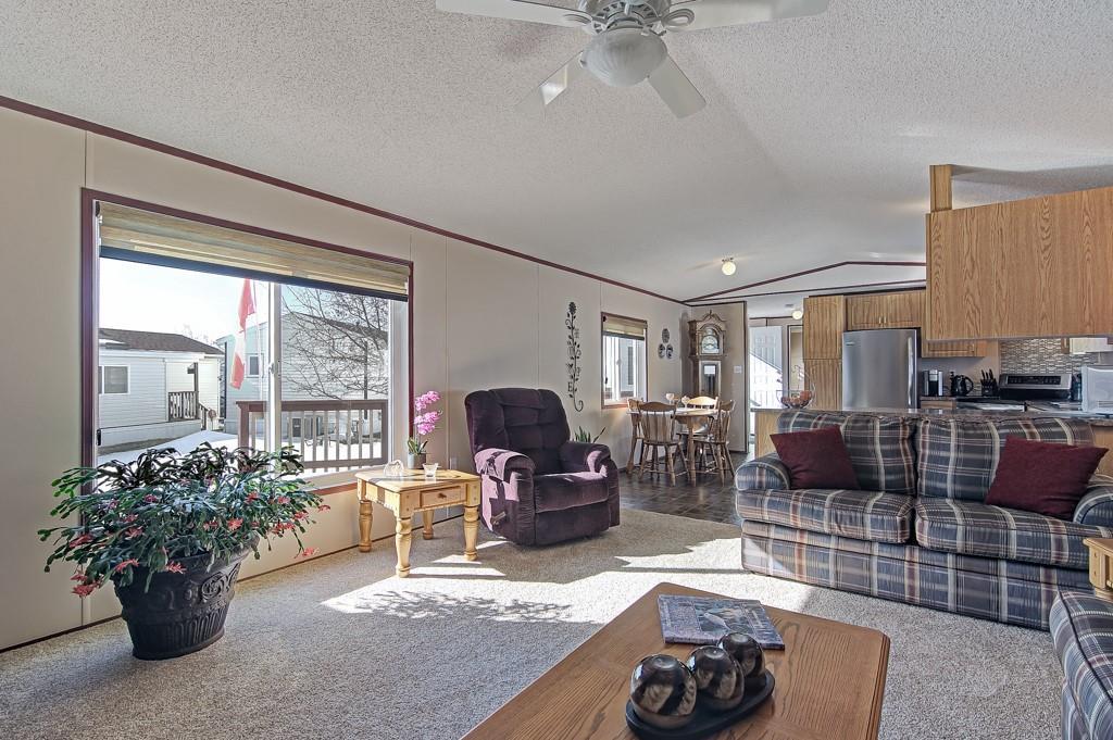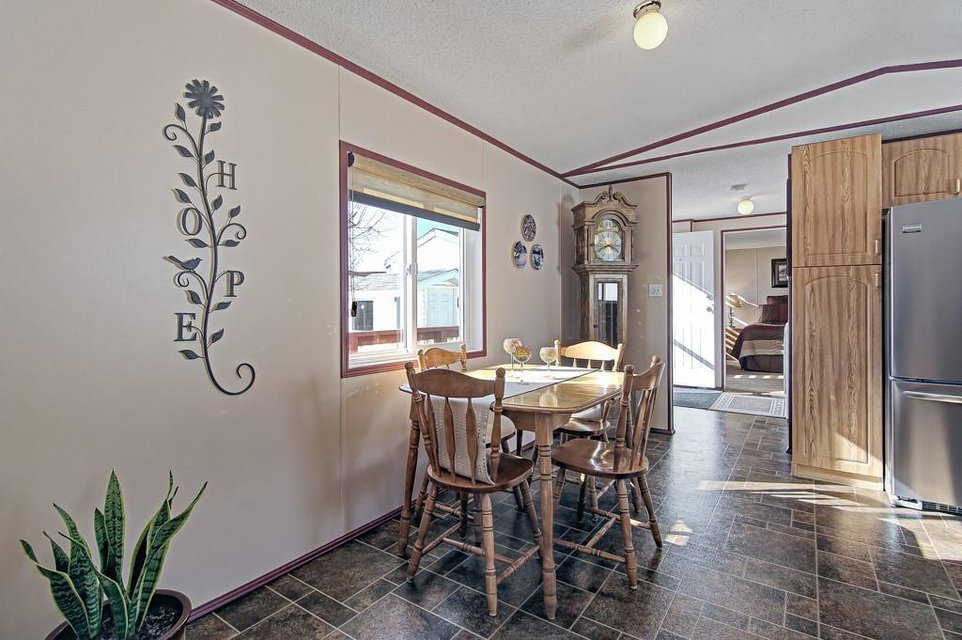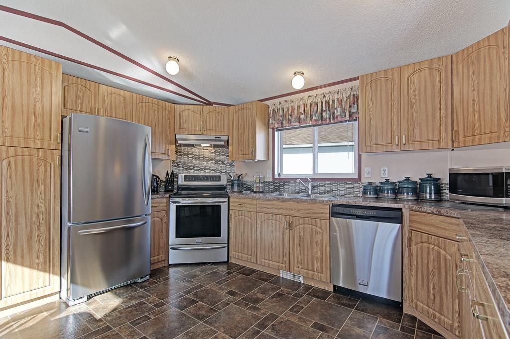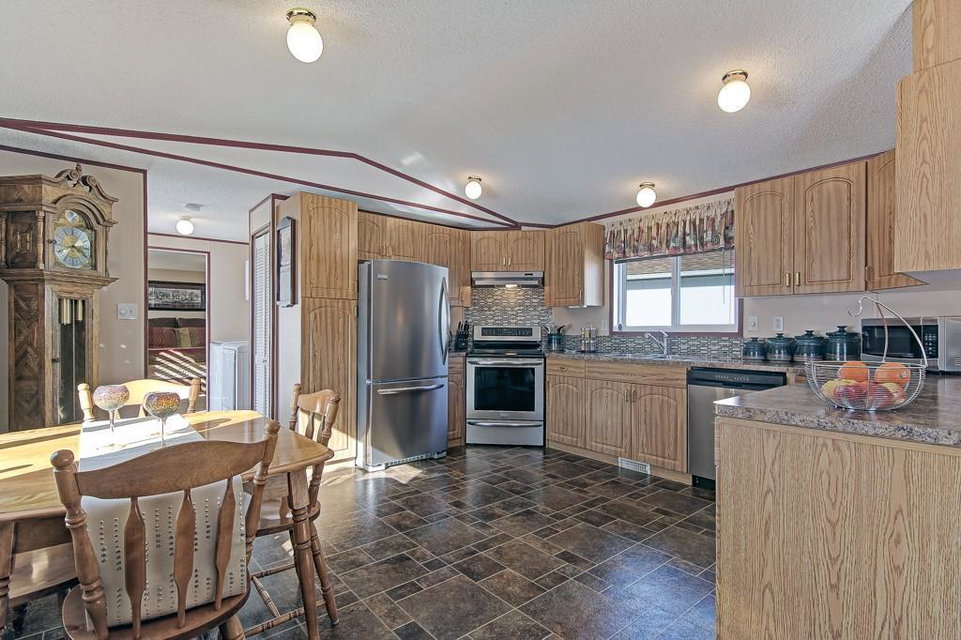 Completely upgraded with modern decor. Improvements include, STAINLESS Appliances, Backsplash and Countertops, Flooring, Paint, High End CUSTOM BLINDS, and the list goes on. This home is move in ready. Ranch Estates is one of the nicest parks in Southern Alberta. Expansive lawns, green spaces, bordering the canal, Ranch House for gatherings, potlucks, happy hours. This friendly park has an active homeowners assoc, be as involved as you would like. The position of this home within the park provides added privacy and backs to green space. Also included is a heated storage shed.