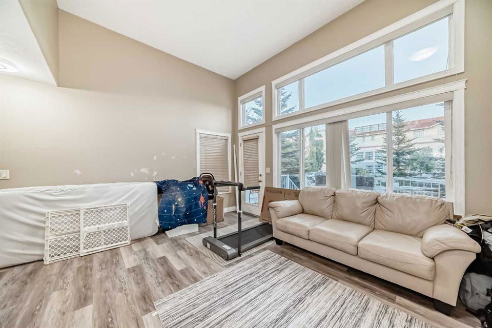 Nestled within a peaceful, tree-lined enclave of Dover, this exceptional three-bedroom, three-and-a-half-bath townhome offers a rare blend of space, brightness, and calm urban living. From the moment you arrive, the attractive exterior and adjacent visitor parking make a great first impression. Step inside to a thoughtfully planned layout that effortlessly adapts to modern life. The attached garage leads to a fully developed lower level featuring a comfortable flex space, a three-piece bathroom, and endless possibilities—perfect for overnight guests, a workout area, or a private retreat. The main living space is truly striking, with dramatic 16-foot ceilings creating an open, airy atmosphere, anchored by a sleek electric fireplace that adds warmth and style. A few steps above, the sun-filled kitchen and dining area become the heart of the home, showcasing solid maple cabinetry, stainless steel appliances, and a layout designed for both everyday living and entertaining. Through the patio doors, an expansive deck invites you to relax and unwind while overlooking a quiet, partially fenced green space—ideal for peaceful mornings or tranquil evenings. A convenient powder room and laundry area complete this level. Upstairs, you’ll find three well-proportioned bedrooms, including a spacious primary retreat that easily accommodates a king-sized bed, along with a walk-in closet and a beautifully finished four-piece ensuite. Two additional bedrooms and a full bathroom provide flexibility for family, visitors, or a dedicated home office. This bare land condominium offers the best of both worlds—independent ownership with low-maintenance convenience—within a well-managed and pride-filled community that has seen recent improvements to irrigation, parking areas, and drainage. Located just minutes from downtown, commuting is effortless with quick access to Deerfoot Trail, Memorial Drive, 17th Avenue, and the airport. Transit is close at hand with a nearby bus stop and a short drive to the Franklin LRT station. Dover itself is rich with outdoor amenities, including parks, pathways, playgrounds, rinks, a splash park, dog park, and scenic viewpoints that capture both city and mountain vistas. Well-regarded schools are close by, making this location as practical as it is appealing. This is more than a home—it’s a lifestyle defined by light, space, and connection, where every return feels welcoming and every day feels just a little easier.