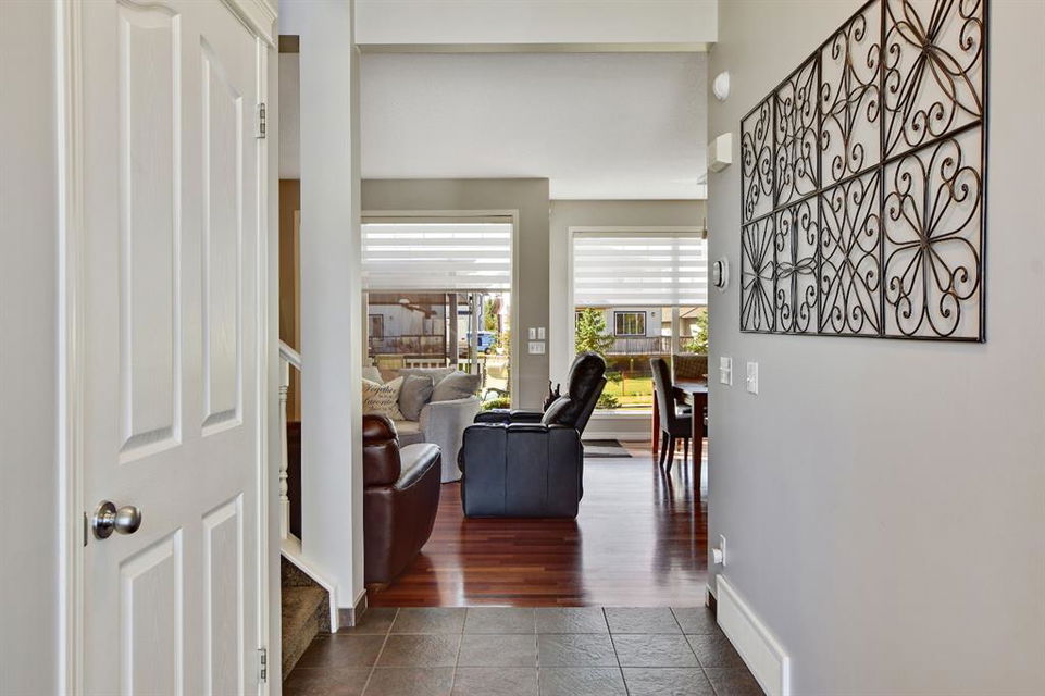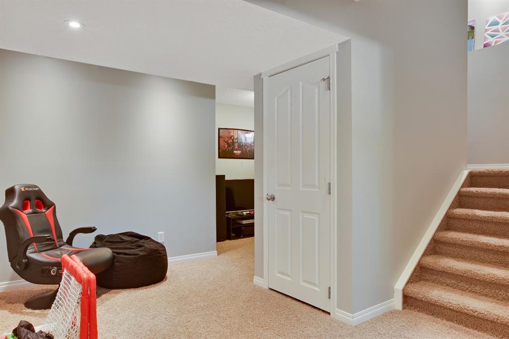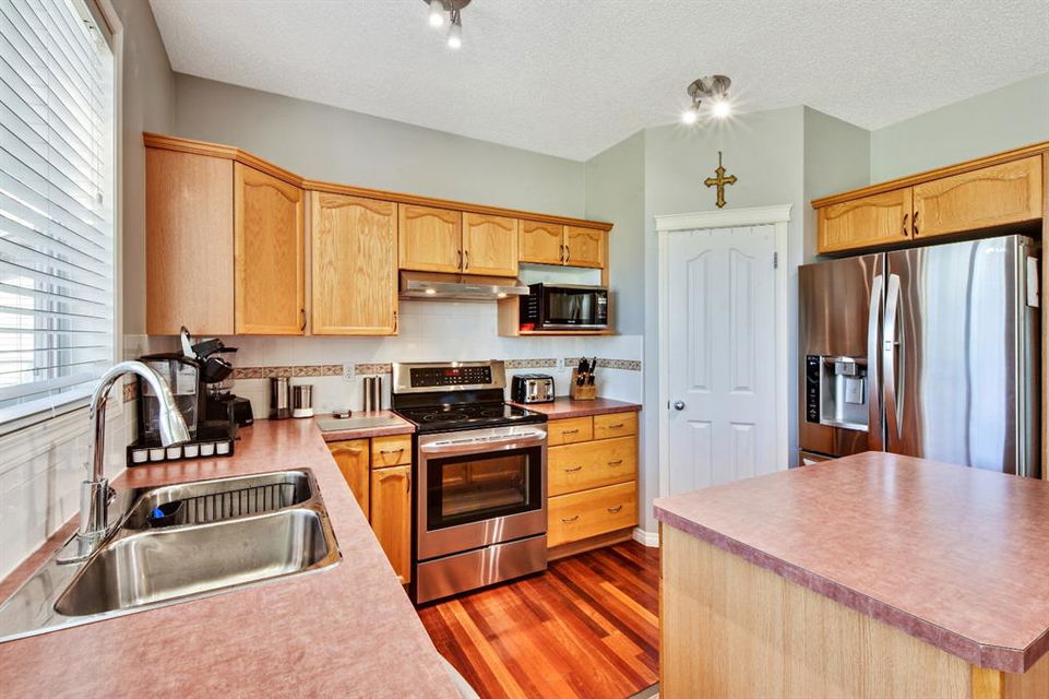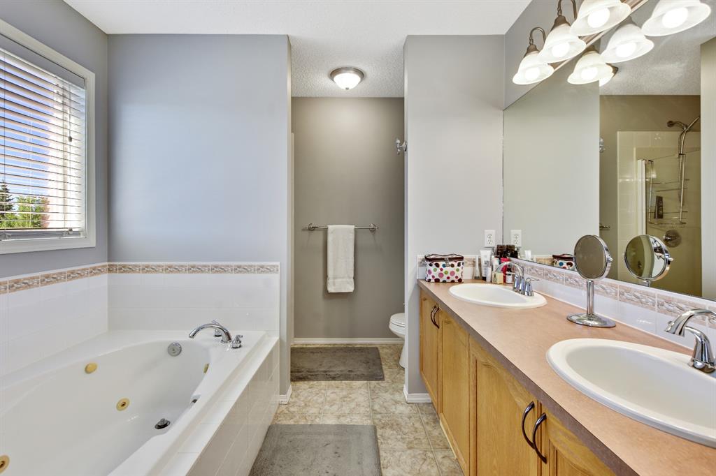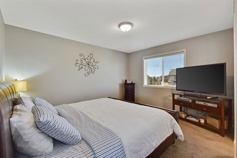 On a quiet street in West Creek, this charming 2-storey home has an endless list of features & has been meticulously cared for. Surrounded by friendly neighbors, the home immediately welcomes you with a cozy front porch, perfect for those morning coffees. The double attached garage has been insulated and dry-walled and is also heated! Stepping into the home, you immediately notice the beautiful tile entry and the Brazilian Cherry hardwood floors that extend through the rest of the main floor. There, you’ll find a spacious office/den area, perfect for working from home, equipped with a large window for natural light. Moving further into the home, natural light begins to flood the experience with massive windows through the back of the home, finished with gorgeous Silhouette shades, and tinted to keep the home cooler, but if that’s not enough, the home is also equipped with central air conditioning, which can be controlled along with the furnace by your Smart Ecobee Thermostat. The open concept living space begins with a spacious living room, accented by a corner fireplace with mantle and tile surround, which has wiring for entertainment, including Satellite. You’ll notice the updated modern light fixtures and recessed lighting throughout this level. The home is fully roughed in for sound, and the main level also features in ceiling speakers already there to complement the surround sound wiring. The spacious eating area is next, followed by a well equipped kitchen, with brand new stainless steel appliances, new plumbing fixtures, rough-in for a gas range, and a convenient pantry! The island is great as a work area or gathering around with family and friends. The mud room/laundry room combo is equipped with a high end washer and dryer, racks for coats and access to the garage. A half bathroom completes the main level. All 3 floors have been freshly painted and this home shows no signs of age! Venturing upstairs, you’ll notice the new silk shag carpets on the stairway and throughout the upper level. 2 spacious bedrooms, each with their own double closets & large windows, and a full bathroom greet you enroute to the Master Suite. The master bedroom is quite spacious & has a huge walk-in closet, & is complemented by a gorgeous Ensuite with his and her sinks, jetted tub, separate shower & water closet. The basement is also developed featuring a Family/Entertainment room with custom built-ins and surround sound 5.1 wiring, & is also home to a spacious 4th bedroom, & full bathroom with a brand new high end toilet. The home features new faucets, taps and shower heads throughout! The basement also has another arts/crafts room or just somewhere to stick the kids (or the husband) to play video games! The back yard features a composite deck with iron railing, a lower level exposed aggregate patio, gas line, powered & secured shed, a beautiful yard and views of the pond on one side and a park on the other, with no immediate back neighbors. Truly an oasis & a place to call home!