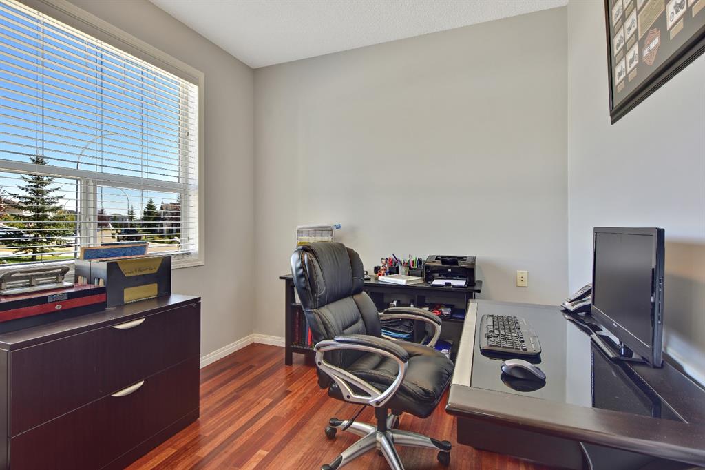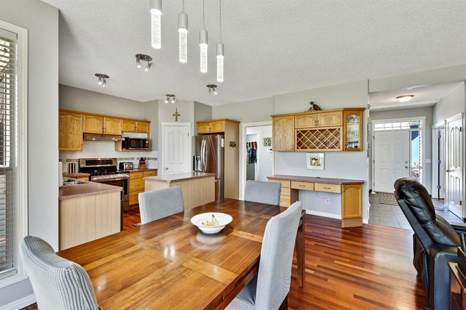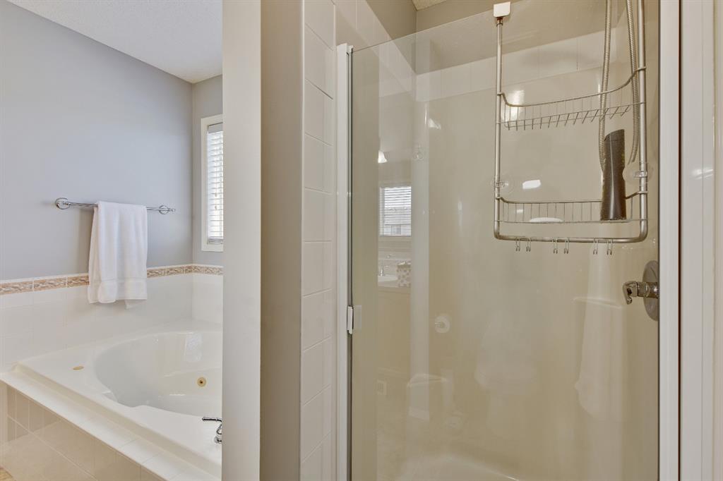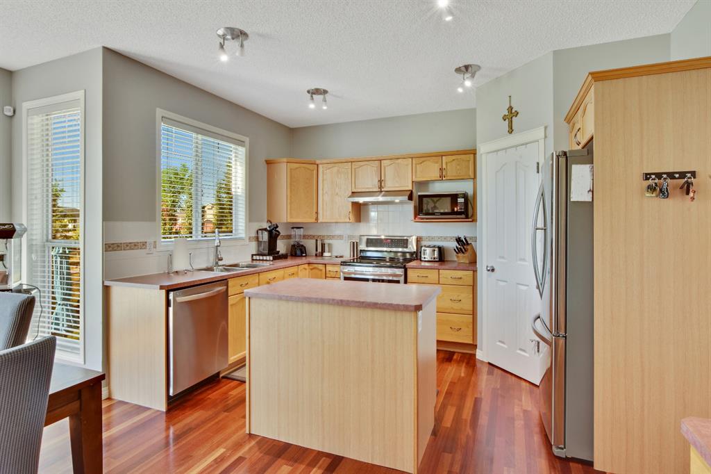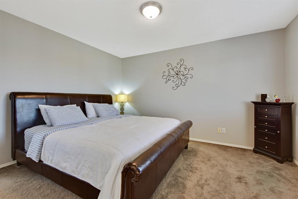 On a quiet street in West Creek, this charming 2-storey home has an endless list of features & has been meticulously cared for. Surrounded by friendly neighbors, the home immediately welcomes you with a cozy front porch, perfect for those morning coffees. The double attached garage has been insulated and dry-walled and is also heated! Stepping into the home, you immediately notice the beautiful tile entry and the Brazilian Cherry hardwood floors that extend through the rest of the main floor. There, you’ll find a spacious office/den area, perfect for working from home, equipped with a large window for natural light. Moving further into the home, natural light begins to flood the experience with massive windows through the back of the home, finished with gorgeous Silhouette shades, and tinted to keep the home cooler, but if that’s not enough, the home is also equipped with central air conditioning, which can be controlled along with the furnace by your Smart Ecobee Thermostat. The open concept living space begins with a spacious living room, accented by a corner fireplace with mantle and tile surround, which has wiring for entertainment, including Satellite. You’ll notice the updated modern light fixtures and recessed lighting throughout this level. The home is fully roughed in for sound, and the main level also features in ceiling speakers already there to complement the surround sound wiring. The spacious eating area is next, followed by a well equipped kitchen, with brand new stainless steel appliances, new plumbing fixtures, rough-in for a gas range, and a convenient pantry! The island is great as a work area or gathering around with family and friends. The mud room/laundry room combo is equipped with a high end washer and dryer, racks for coats and access to the garage. A half bathroom completes the main level. All 3 floors have been freshly painted and this home shows no signs of age! Venturing upstairs, you’ll notice the new silk shag carpets on the stairway and throughout the upper level. 2 spacious bedrooms, each with their own double closets & large windows, and a full bathroom greet you enroute to the Master Suite. The master bedroom is quite spacious & has a huge walk-in closet, & is complemented by a gorgeous Ensuite with his and her sinks, jetted tub, separate shower & water closet. The basement is also developed featuring a Family/Entertainment room with custom built-ins and surround sound 5.1 wiring, & is also home to a spacious 4th bedroom, & full bathroom with a brand new high end toilet. The home features new faucets, taps and shower heads throughout! The basement also has another arts/crafts room or just somewhere to stick the kids (or the husband) to play video games! The back yard features a composite deck with iron railing, a lower level exposed aggregate patio, gas line, powered & secured shed, a beautiful yard and views of the pond on one side and a park on the other, with no immediate back neighbors. Truly an oasis & a place to call home!