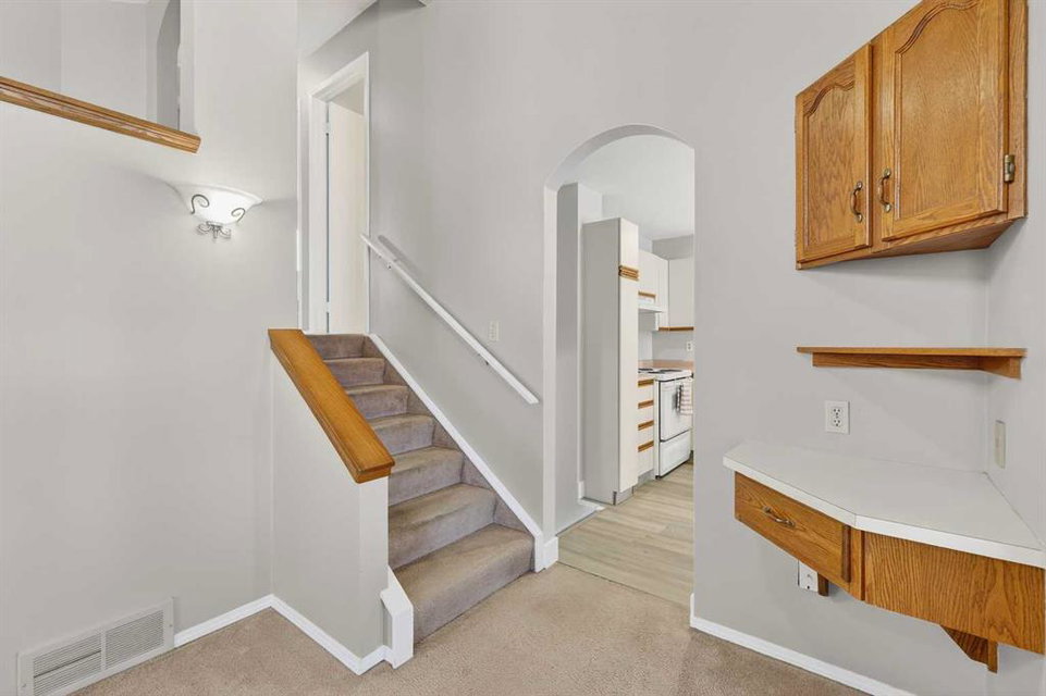 Welcome to this 4-level split located in the established community of Deer Run. As you enter, you are greeted by a bright, generously sized living room with a vaulted ceiling that flows into the formal dining area. The U-shaped kitchen offers ample cabinet and countertop space and connects to a breakfast nook/eating area. Upstairs, you will find an open office area overlooking the main level, ideal for working from home. The primary bedroom is spacious enough to accommodate a king-sized bed and features a good-sized closet along with a cheater door to the main bathroom. A second good-sized bedroom completes this level. The third level features a walkout with a large family room, games area, gas fireplace, and a full bathroom. Patio doors lead to the south-facing backyard with a concrete patio, firepit, gazebo, and plenty of space to make it your own. The yard offers a good amount of room for outdoor living. The fourth level provides additional storage space. Recent updates include vinyl plank flooring and a renovated bathroom on the third level. The driveway provides ample off-street parking. Conveniently located close to Fish Creek Park, walking paths, schools, and with easy access to amenities.
