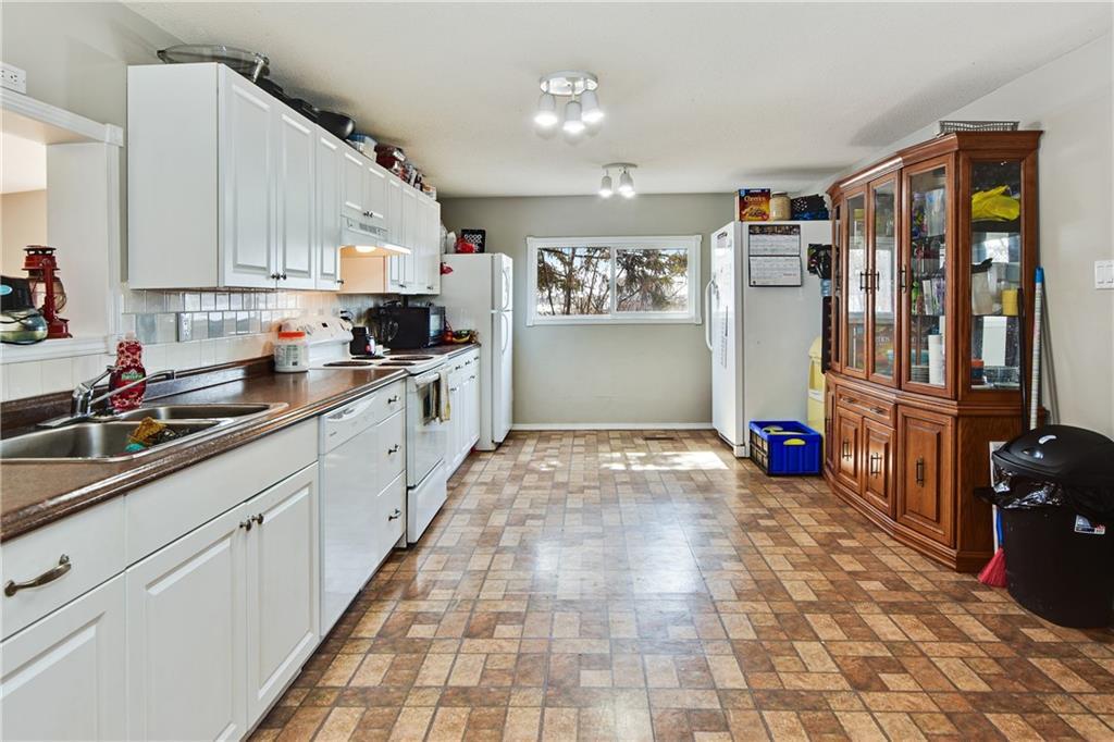 MECHANIC’S DREAM – oversized heated & fully insulated double detached garage with 220v wiring. Front & Rear drive access and LOADS of driveway parking. This home boasts over 1700 sq ft of main floor living, 3 bedrooms & 2 full bathrooms, situated on a quarter acre lot! Open the front door to the living area, basking in natural light through the large south facing, vinyl windows. This home offers a spacious kitchen / dining area, perfect for entertaining and a large family room that opens up to a south facing deck! Finishing off the main level is the Master Bedroom with walk-in closet and 3 pc ensuite, great size 2nd & 3rd bedrooms, 4 pc bath and a huge Mudroom & Laundry combo which leads to the back door. So Convenient!! Hot Water tank is newer, roof is nearing time for repair. Located steps away from neighbourhood amenities, including Grocery Store, Restaurants, Tim Hortons & Medical Centre. Garage Details:RMS MEASURES: 27’0” x 24’11” | Door 16’0” x 8’0” | Height – 9’11”220 V 50 Amp Welder PlugWired for 220 Air CompressorOverhead Radient Heat2x6 StudsR20 Insulation in wallsR40 Insulation in ceiling