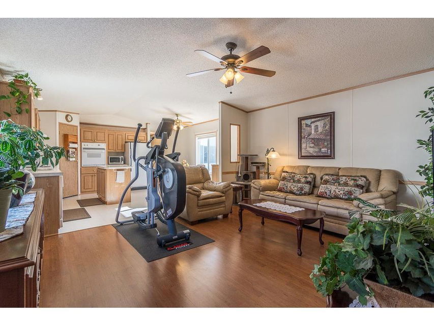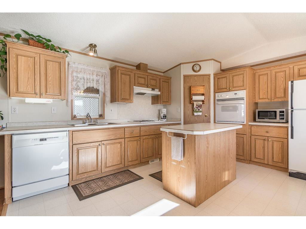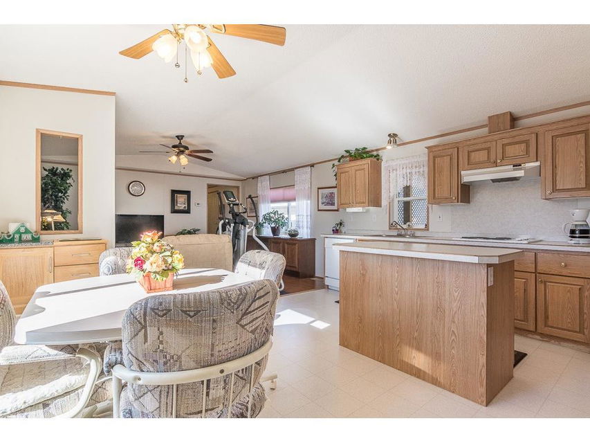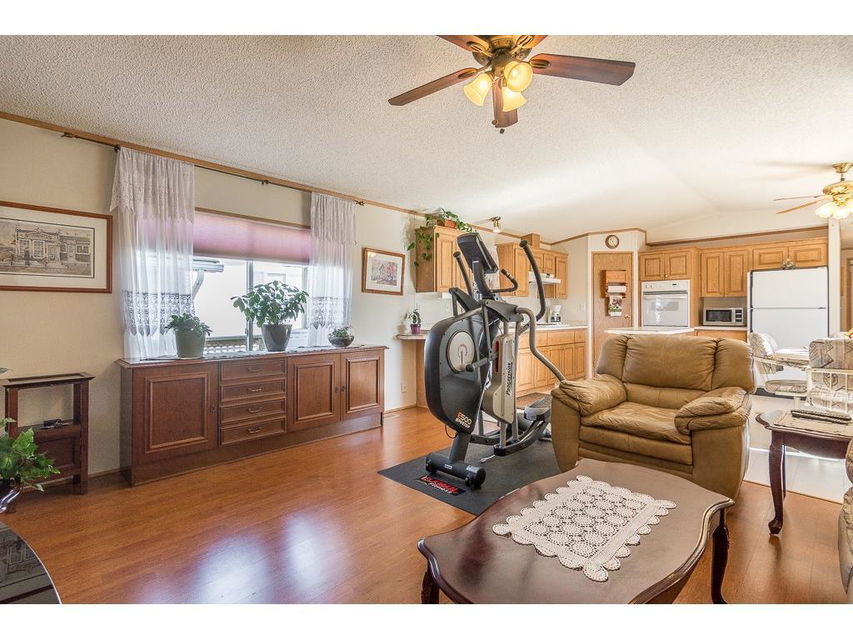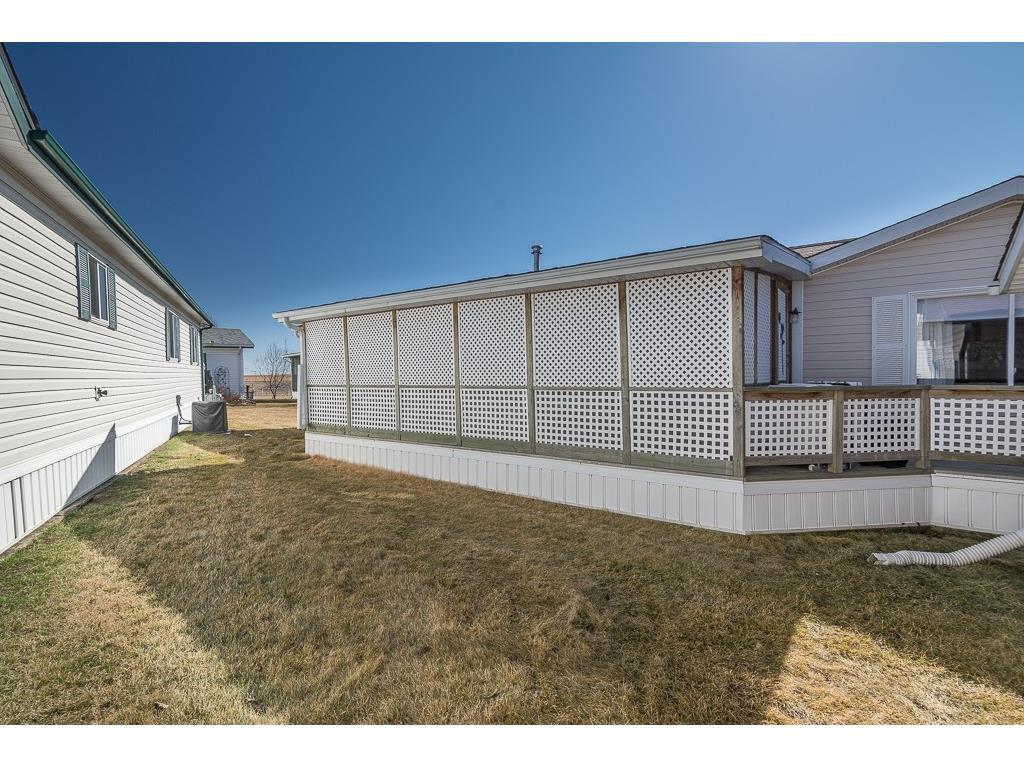Welcome to the lovely Adult, Gated Community of Ranch Estates. This 3 Bedroom, 2 Bathroom home has an open-concept Living Room, Kitchen, Eating area, is bright and roomy. In the Kitchen, you’ll find lots of cabinets and counterspace, a corner pantry and an island. Enjoy the LARGE Deck of which 23’x10′ is covered, cozy and private, a wonderful spot to read, have coffee or enjoy tme with friends. There is a single Detached Garage and parking pad which will accommodate 2 additional vehicles. Some of the amenities this park offers are groomed greenspaces, a community garden, on-site Park Manager, and Club House..and is located close to walking paths and the beautiful Kinsmen Lake Park.