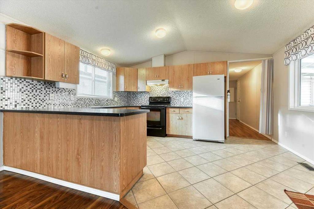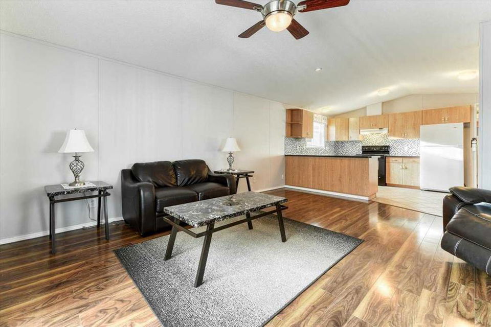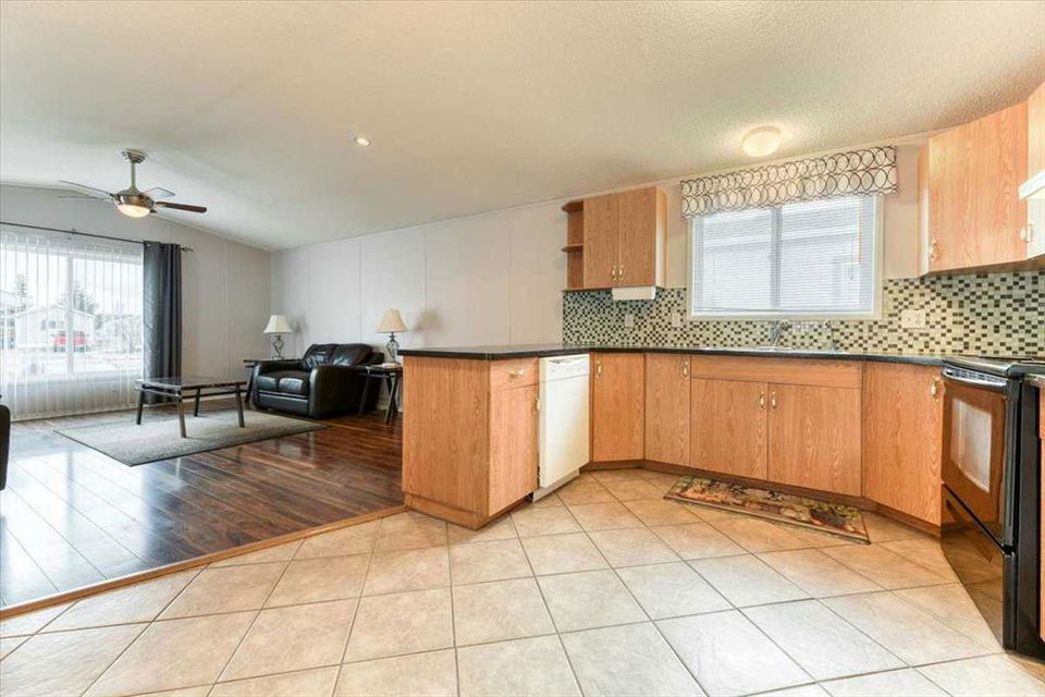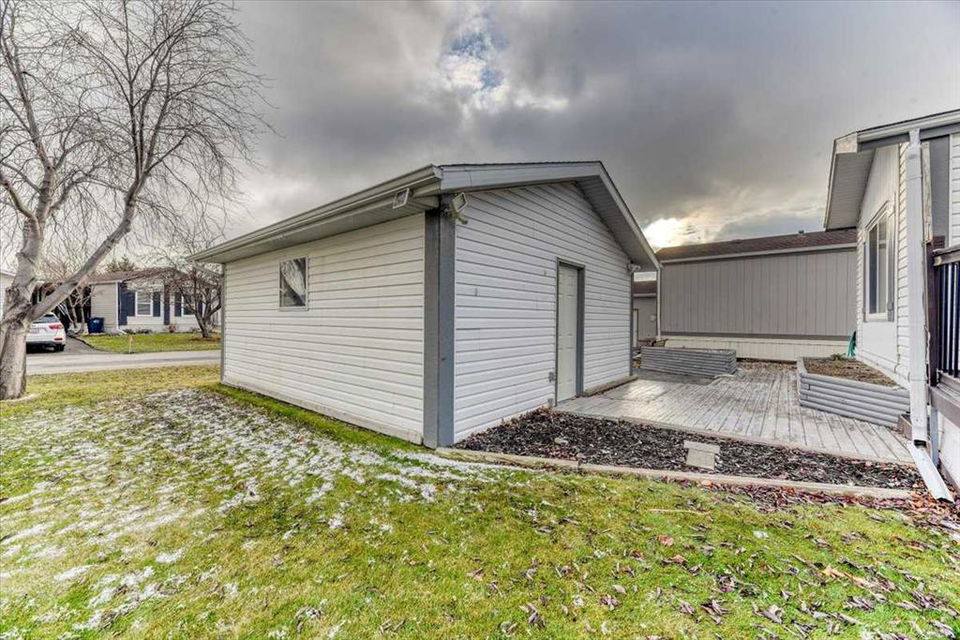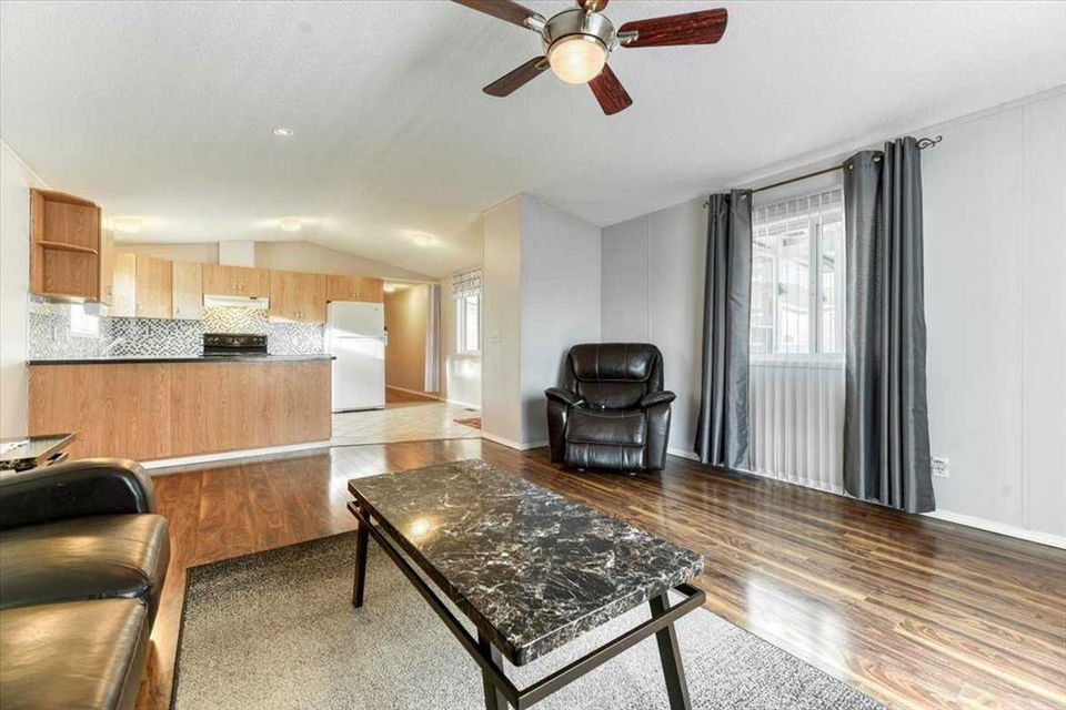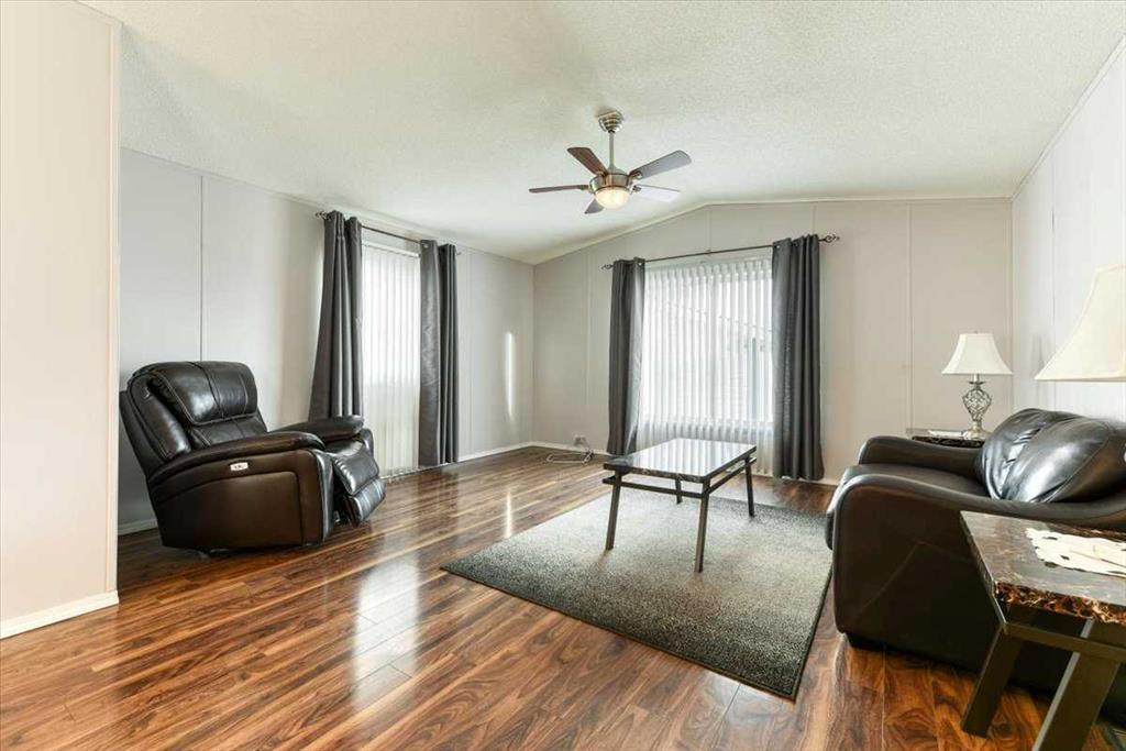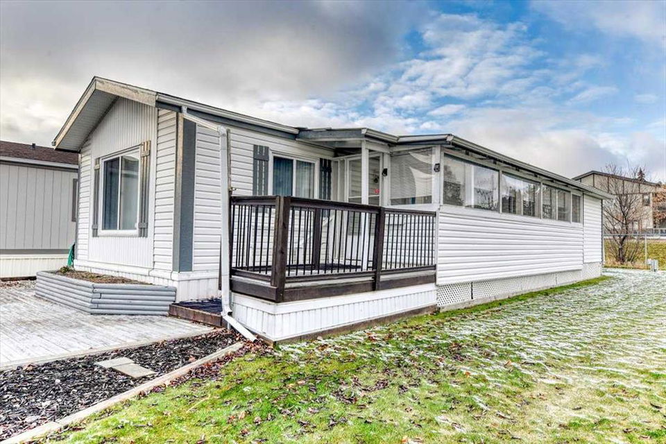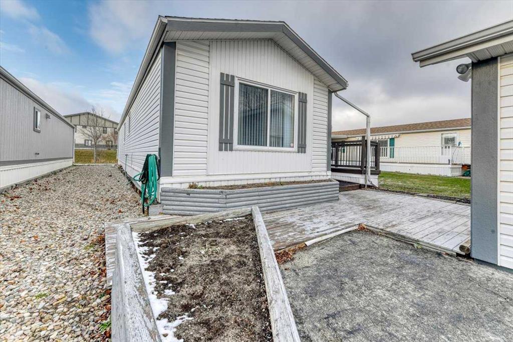 Welcome to Ranch Estates in Strathmore. This 2 bedroom home features a u shaped kitchen over looking the open living area. A large covered 3 season deck, and extra storage area and a Single GARAGE are just some of the features of this home. Properties in this park with a garage are hard to come by. If you have been waiting to get into Ranch Estates this may be your opportunity. Ranch Estates is located close to shopping and banking. Strathmore has its own hospital, rec centre, swimming pool, and numerous amenities.