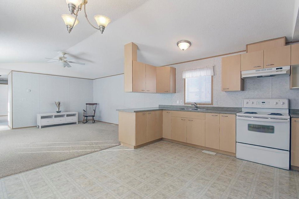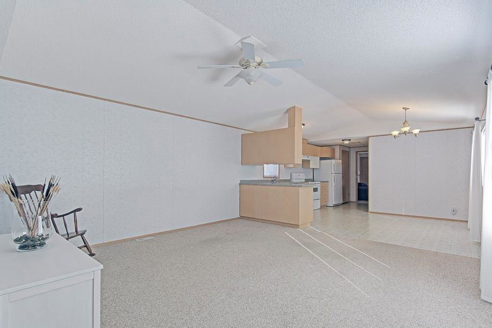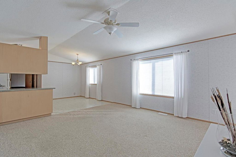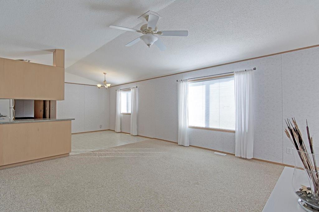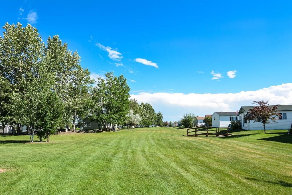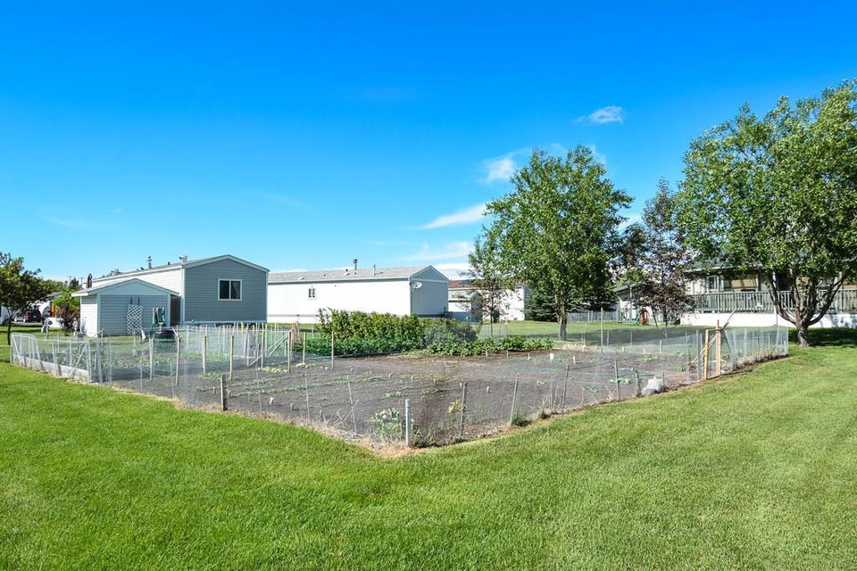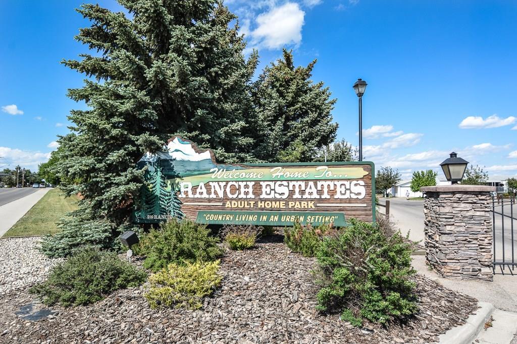 MUST SELL! MOTIVATED and will consider ALL reasonable offers. Located in the Premier 40+ Ranch Estates Park. Spotless, no animal, no smoking 2003 home. Original owner and well looked after. This bright and light filled home features 1216 sq ft of open concept living. Kitchen has lots of cupboards, counter space and large pantry. Generous master bedroom with walk in closet and full ensuite. Two additional bedrooms located at opposite end of home allows for privacy and extra space for office/guests/sewing room. Outside you will find a large sunken deck to enjoy morning coffee, retractable awning and surrounded by mature trees provides additional shade and privacy. Located in a very desirable location in the park, backing to Green space. All plumbing, electrical, and furnace inspected within the last year. Pad fee of $634.00/month includes snow removal, lawn mowing, electronic gate, on site park manager, 3 season ranch house, community gardens etc.