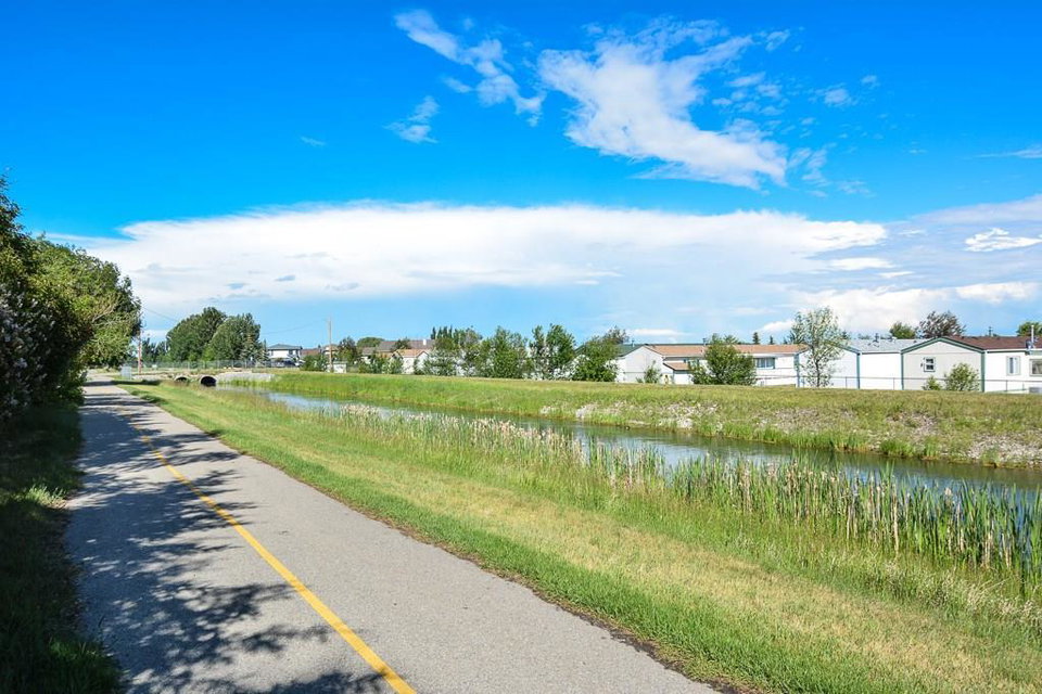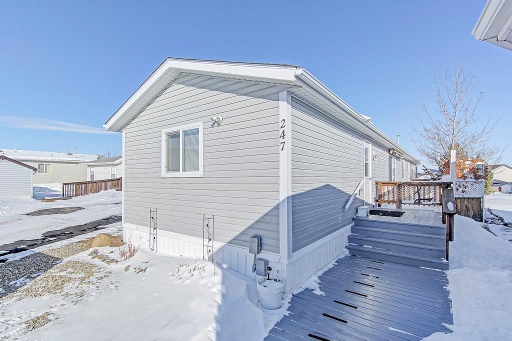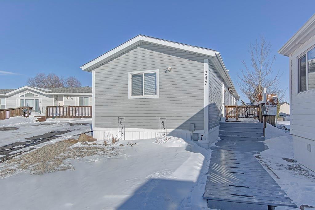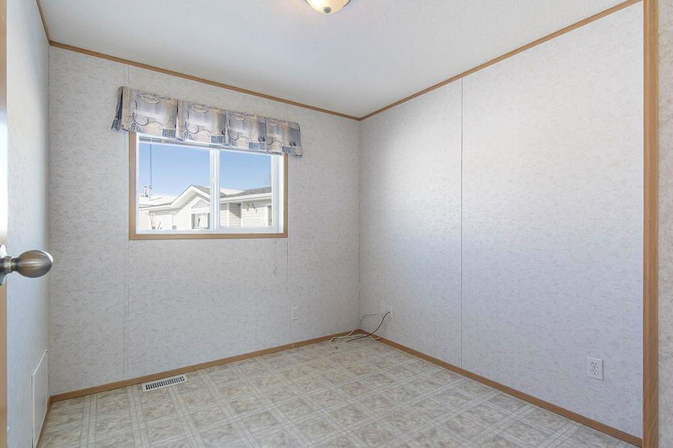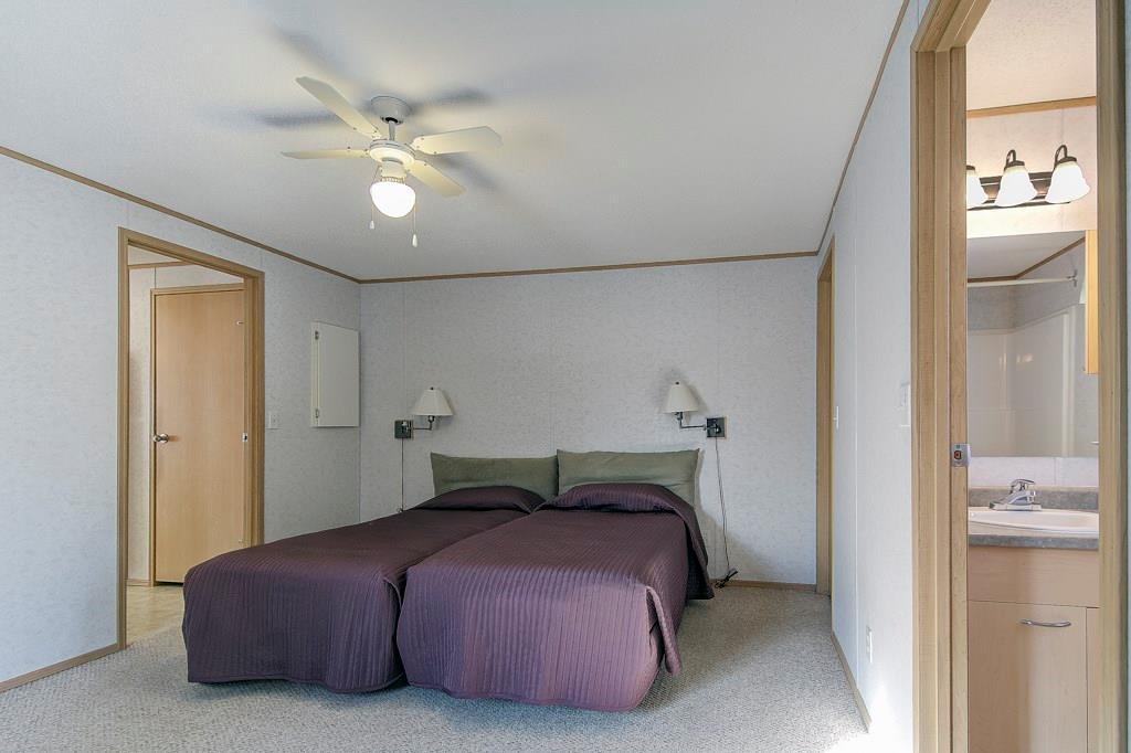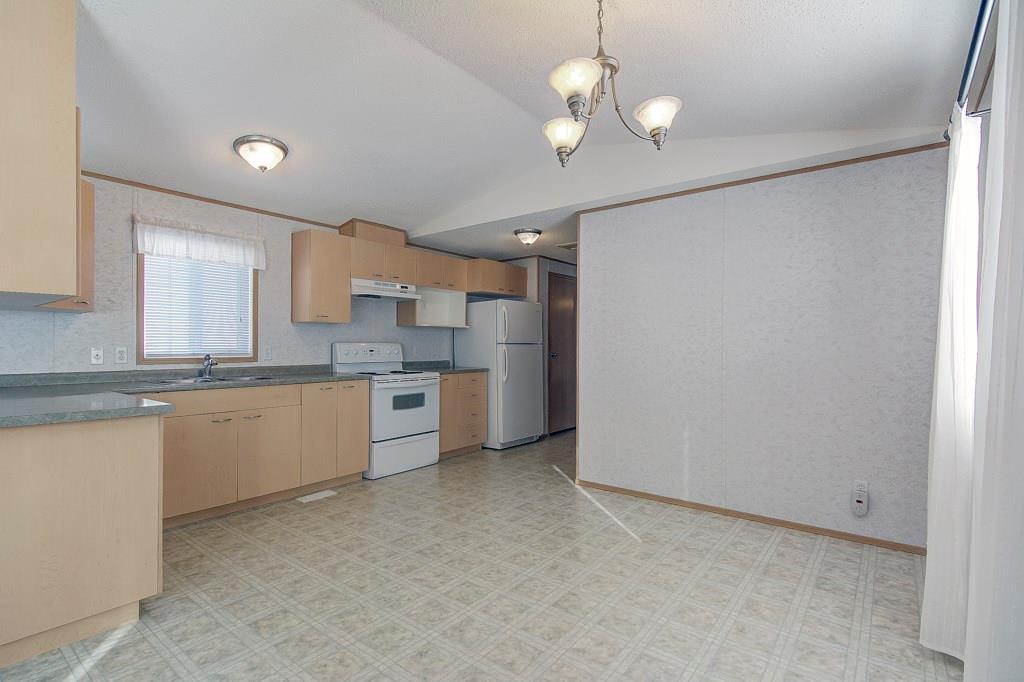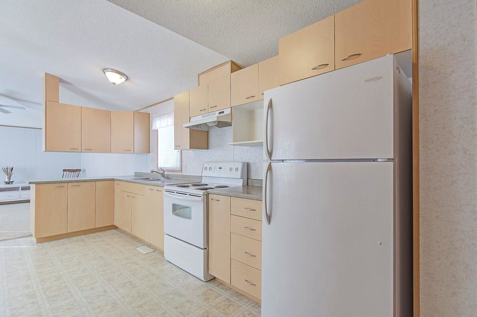 MUST SELL! MOTIVATED and will consider ALL reasonable offers. Located in the Premier 40+ Ranch Estates Park. Spotless, no animal, no smoking 2003 home. Original owner and well looked after. This bright and light filled home features 1216 sq ft of open concept living. Kitchen has lots of cupboards, counter space and large pantry. Generous master bedroom with walk in closet and full ensuite. Two additional bedrooms located at opposite end of home allows for privacy and extra space for office/guests/sewing room. Outside you will find a large sunken deck to enjoy morning coffee, retractable awning and surrounded by mature trees provides additional shade and privacy. Located in a very desirable location in the park, backing to Green space. All plumbing, electrical, and furnace inspected within the last year. Pad fee of $634.00/month includes snow removal, lawn mowing, electronic gate, on site park manager, 3 season ranch house, community gardens etc.