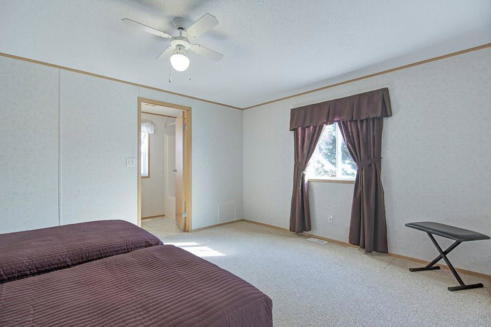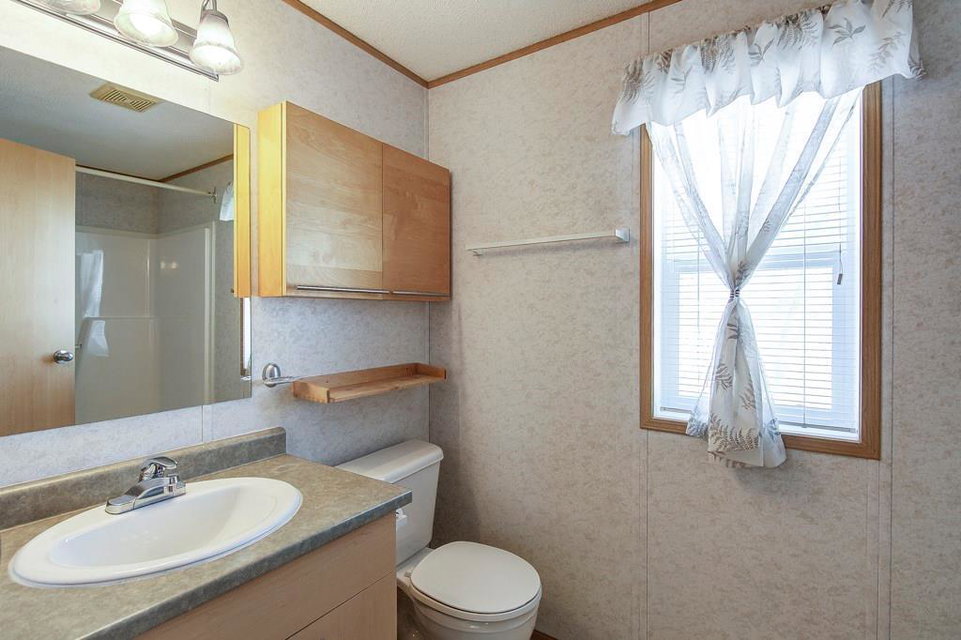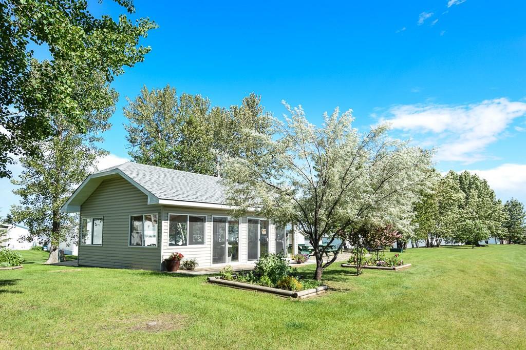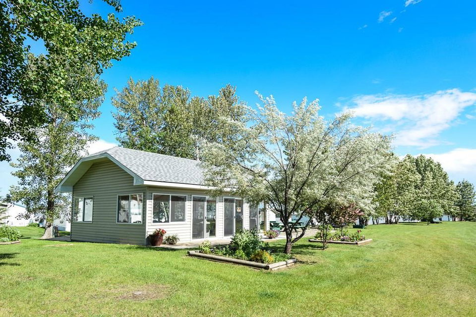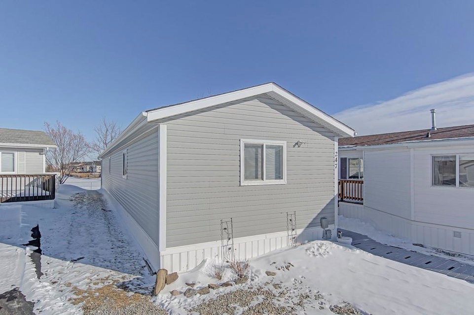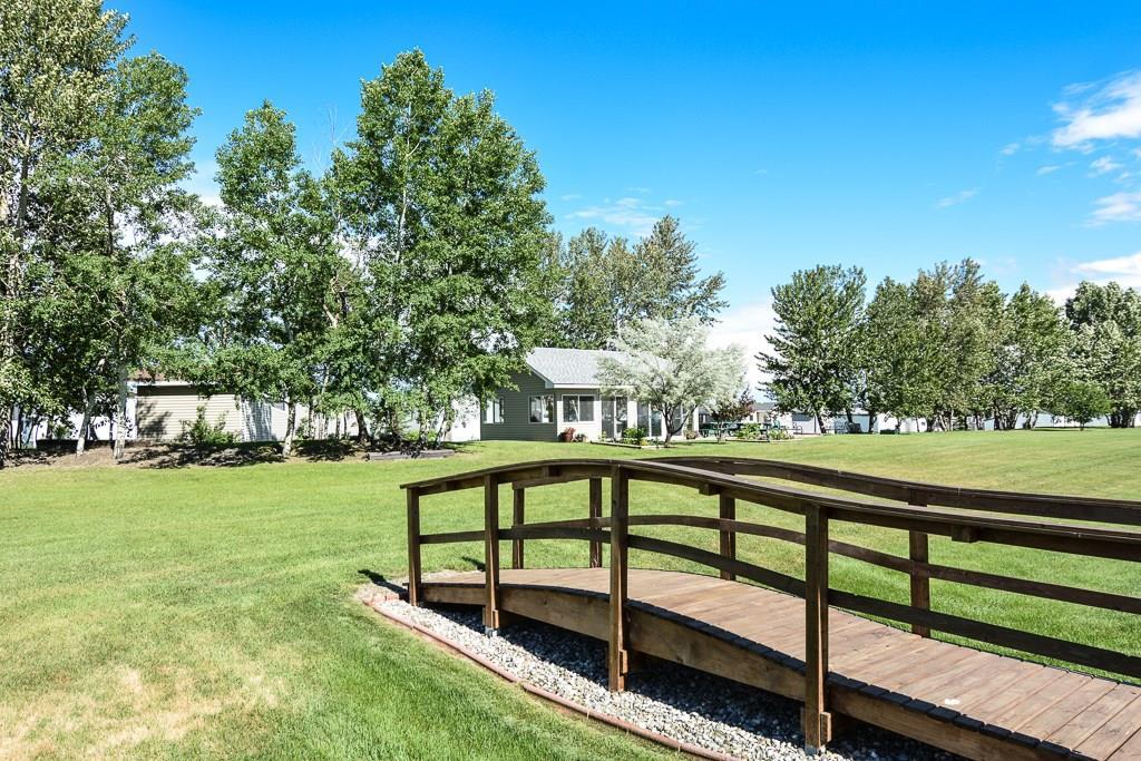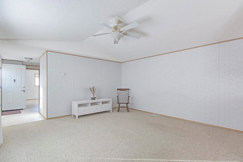 MUST SELL! MOTIVATED and will consider ALL reasonable offers. Located in the Premier 40+ Ranch Estates Park. Spotless, no animal, no smoking 2003 home. Original owner and well looked after. This bright and light filled home features 1216 sq ft of open concept living. Kitchen has lots of cupboards, counter space and large pantry. Generous master bedroom with walk in closet and full ensuite. Two additional bedrooms located at opposite end of home allows for privacy and extra space for office/guests/sewing room. Outside you will find a large sunken deck to enjoy morning coffee, retractable awning and surrounded by mature trees provides additional shade and privacy. Located in a very desirable location in the park, backing to Green space. All plumbing, electrical, and furnace inspected within the last year. Pad fee of $634.00/month includes snow removal, lawn mowing, electronic gate, on site park manager, 3 season ranch house, community gardens etc.
