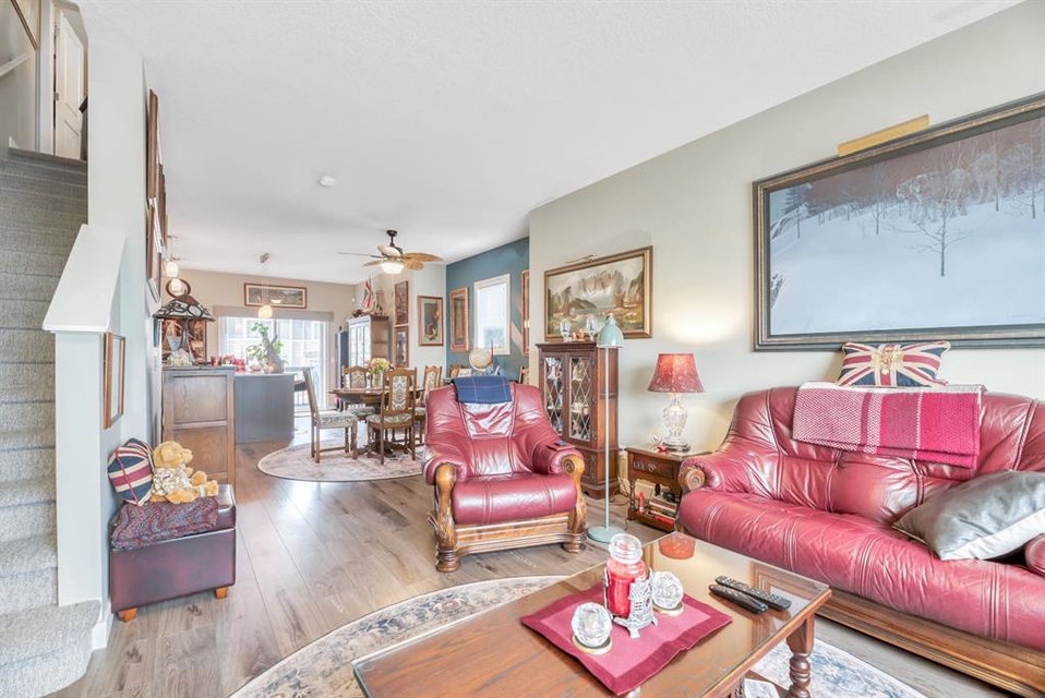 Experience carefree living with all of Chestermere’s amenities just steps from your front door. Walk to shopping, restaurants, bars, gyms, the library and of course – the lake, beach and the many picturesque parks and pathways Westmere has to offer including an a huge off leash dog park! This end unit townhome is immaculate, move in ready and thoughtfully laid out over 3 levels giving you both open plan living perfect for entertaining and gathering as well as quiet intimate spaces for work or relaxation. On the main level is a private office space that is perfect for anyone who is looking to work or study from home. There is even a 2 pc powder room conveniently located on this level. The main floor is open concept, flooded with natural light and boasts 9’ ceilings. The well equipped kitchen is complete with sleek European style cabinetry, newer stainless steel appliances including an induction stove, granite counters and an island with seating. A good sized dining area is located between the kitchen and the warm & welcoming living room. There is a great deck off the kitchen to enjoy some outdoor time.. 3 good sized bedrooms are found on the 3rd level including a primary complete with 3 pc ensuite bath with granite countertops as well as his and hers closets outfitted with Denca custom cabinetry. The main bath also has granite countertops and is ideally located right next to the second and third bedrooms and you’re going to love the convenience of upstairs laundry which is discreetly tucked into its own closet. Check out the Hunter Douglas thermal cell blinds keeping your home cool in summer and warm in the winter. Second floor blinds have remote control features which adds another level of privacy. New carpet has been added to both sets of stairs. The attached single car garage is insulated, heated and drywalled and comes with added shelving for storage. A fenced front yard is perfect for pets and kids to play because yes your fur babies are welcome in this pet friendly with board approval complex. But there’s no need to bring your shovel since snow removal and grounds maintenance is included. Whether you’re looking for your first home, a little more space for a growing family or downsizing for less maintenance and financial freedom this home fits the bill. You are going to love living in the vibrant community of Chestermere. Book your showing now.