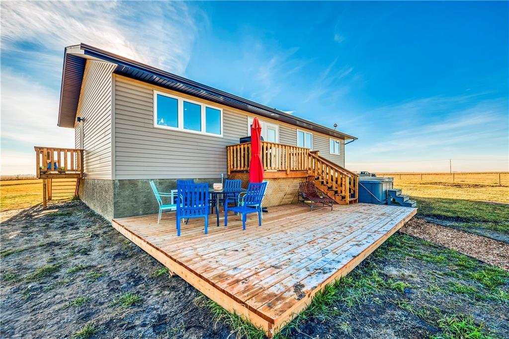 You will be stunned by the quietness of country living. So many things to do on the amazing 3 acres. Great opportunity to own a bungalow with amazing outdoor living space. Ideal for a busy growing family. Tons of natural light on the main floor. Large, functional kitchen with centre island and stainless steel appliances open to eating area. Door off eating area to deck, patio & hot tub! Side entrance off of kitchen & huge closet. The master retreat includes a 3 piece ensuite. 2 additional bedrooms and a 4 piece bath. Basement is ready for your development with room for more bedrooms and bathroom. Big shop (48×32) included on the property. Fully fenced property with lots of room for everyone to enjoy- whether you are looking for a pace to raise some animals, enjoy dirt bikes this is it! Only 45km from the CALGARY Airport….. talk about commutability.