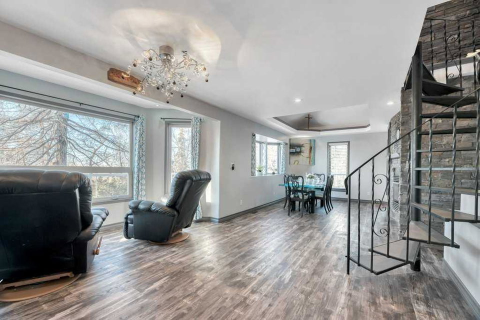 A rare property with one-of-a-kind home. This fully wooded acreage is where space, privacy, and everyday comfort come together—just 20 minutes from Strathmore. Set on 1.8 acres, this property offers the perfect blend of country living with the convenience busy families need. This walk-out bungalow with a loft offers 2,997 sq ft of total developed living space and a layout designed to grow with your family. With five bedrooms, there’s room for kids, guests, home offices, and hobbies. Vaulted ceilings, multiple skylights, and the open loft space flood the home with natural light and give it a bright, welcoming feel you’ll notice the moment you walk in. A spiral staircase adds character and connects the spaces in a way that feels fun, functional, and far from cookie-cutter. Outside is where family memories are made. A deck that wraps the entire home creates endless options for outdoor living—morning coffee, family dinners, kids playing, or entertaining friends. A hot tub is included, offering a private place to unwind. The acreage is perfectly set up for both play and practicality. Equipped with air conditioning for year-round comfort, a detached double garage, a tack shed or playhouse, and a root cellar cold room for extra storage. The mature trees provide privacy while still leaving plenty of open space for kids to explore and enjoy the outdoors. If you’ve been dreaming of more room to breathe, a safe place for your family to grow, and a home with real personality—this property delivers.