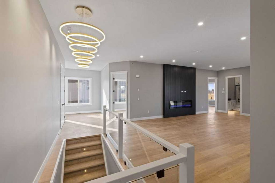 Welcome to this stunning brand-new bungalow in the prestigious Lakes of Muirfield in Lyalta — an exceptional golf community just minutes from Calgary. Here, Luxury truly meets Lifestyle with just over 3350 sq ft of fully developed living space and boasting over $70,000 in upgrades, this home delivers the perfect blend of luxury, function, and modern design.