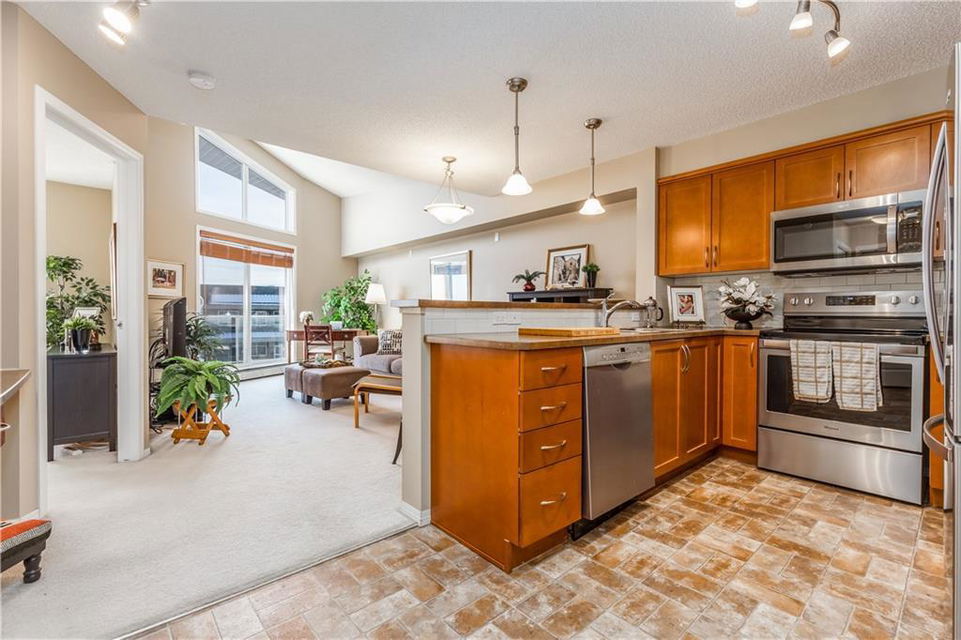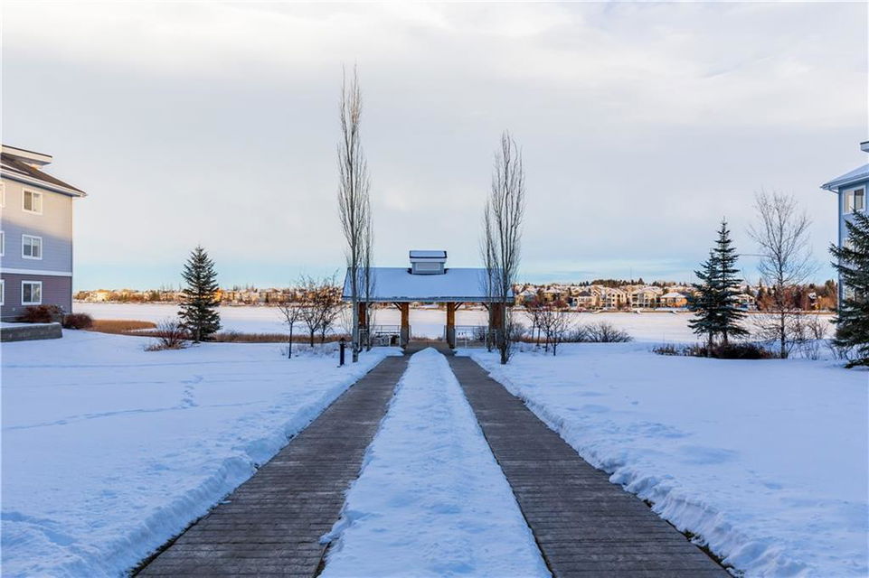 Amazing opportunity to own a TOP FLOOR, 1 bedroom unit at the highly sought-after Bay Club buildings in Chestermere! Building offers secure underground heated parking and storage, and this unit comes with a TITLED PARKING SPOT and TITLED STORAGE unit. The building has great common areas including a gezebo on the lake, board room, fitness center and more! Inside, this unit is IMMACULATE! It shows no signs of age, and has recently been updated with BRAND NEW STAINLESS STEEL APPLIANCES, FRIDGE, STOVE, DISHWASHER, MICROWAVE, WASHER and DRYER! The kitchen is spacious and tasteful with plenty of counter space and a raised eating bar. The kitchen and living room boast VAULTED CEILINGS, unique to the top floor and the living room walks out to your spacious private balcony with lake views. A spacious master bedroom has a large window, walkthrough closet, leading to the 4 piece Ensuite bathroom! If it’s maintenance free living you’re looking for, and an updated, top floor unit that needs NOTHING, this is it!