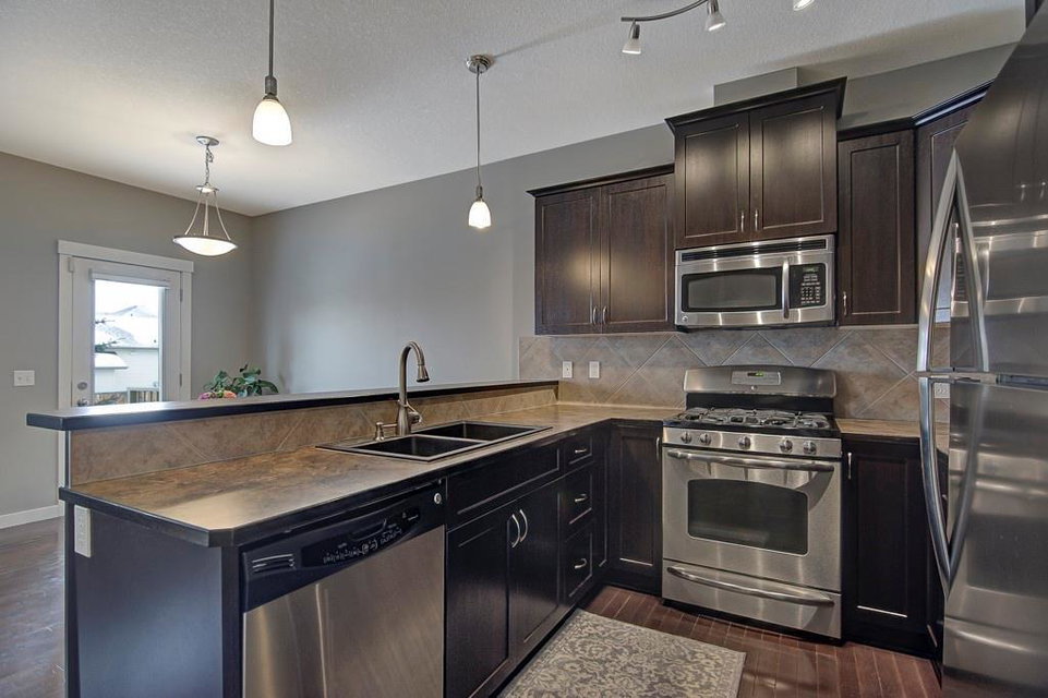 Seller Motivated…This 2 story town home has a newly developed basement, double attached garage, and central air conditioning. Bright and open main floor with 9 foot ceilings. Newly refinished walnut hardwood floors throughout main floor. The Maple kitchen is equipped with stainless steel appliances including a gas stove, lots of cabinet space and a breakfast eating bar. Open to eating area and living room with gas fireplace and built ins. Second level has 3 bedrooms. The master is king size and has a 4 piece ensuite and walk in closet. Full newly developed permitted basement with 4th bedroom, 4 piece bath, large rec room and storage area. All conveniently located near playgrounds, schools and amenities. Exceptional value! Condo fee is $291.00 per month and covers insurance, exterior maintenance, professional management, reserve fund, landscaping and snow removal.