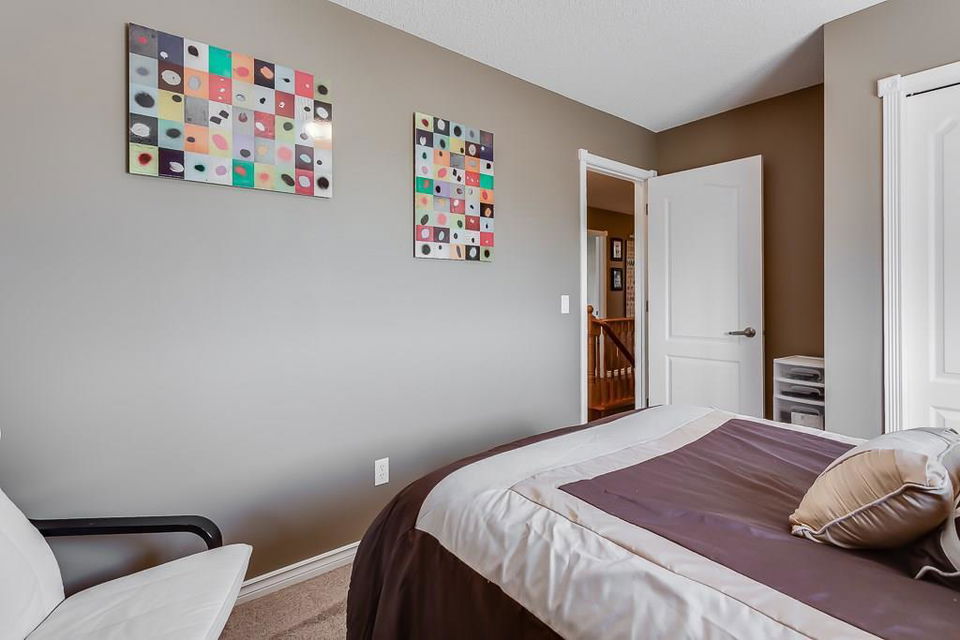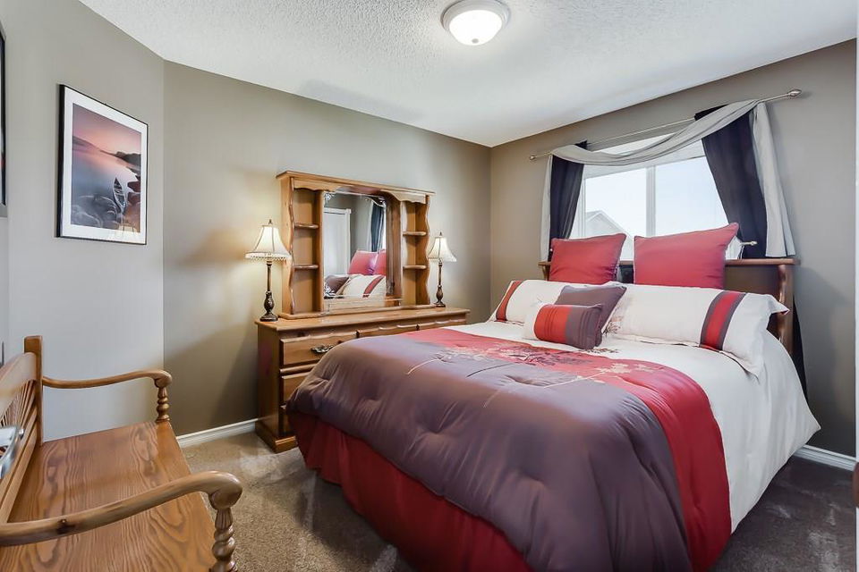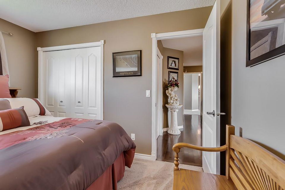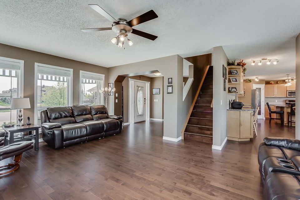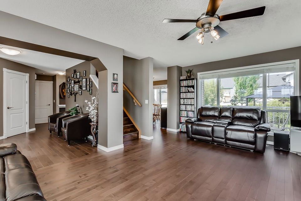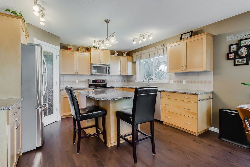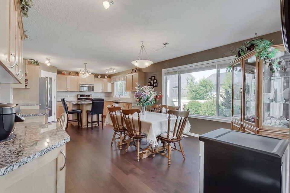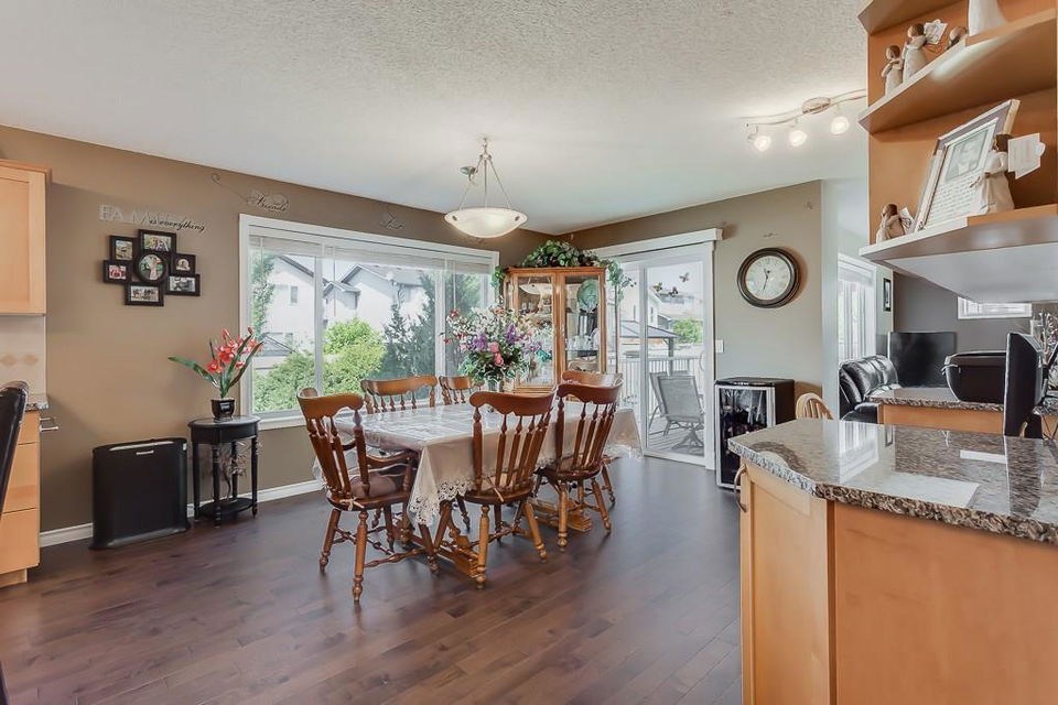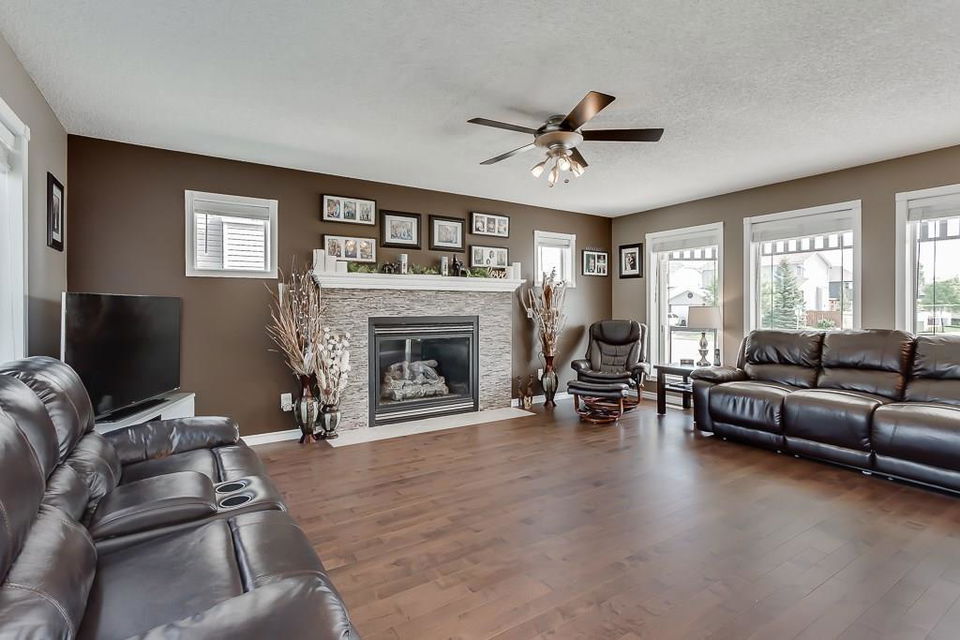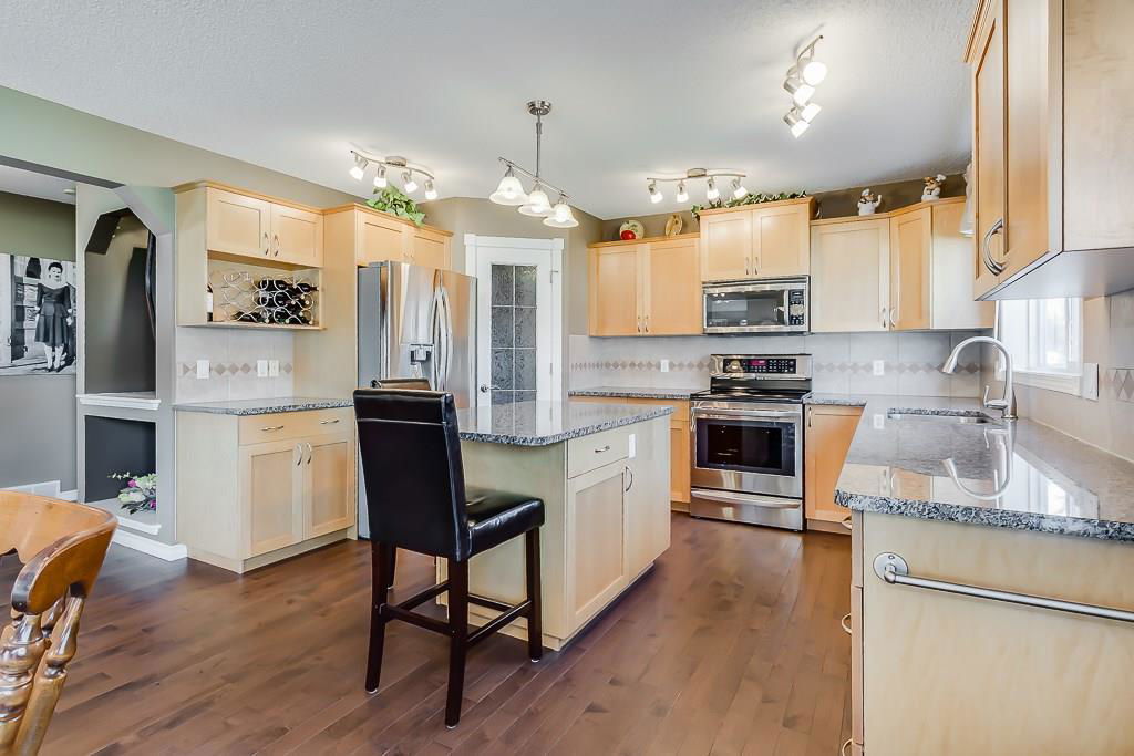 OPEN HOUSE SAT & SUN 1-3 PM Move those you love into this meticulously kept 2-storey 6-bedroom/3.5-bath home. This family-oriented floor plan delivers a cozy living room with gas fireplace, stunning hardwood floors, bright open kitchen with granite countertops, stainless steel appliances, large island, walk-in pantry, large dining area, main floor laundry, and access to the heated garage. Upstairs, you are greeted with three generous sized bedrooms, a 4pc bath, a master suite with walk-in closet, and a luxurious ensuite with separate sinks, separate shower, and corner tub for relaxing nights. Basement has been fully developed with two spacious bedrooms, 3pc bath, family room, and plenty of storage. Relax on the deck in a west facing yard with beautiful landscaping. Central air conditioning, RV parking, underground sprinklers, tons of parking, and much more! Close to schools, parks, pathways, and shopping. Here is a great home for the growing family!