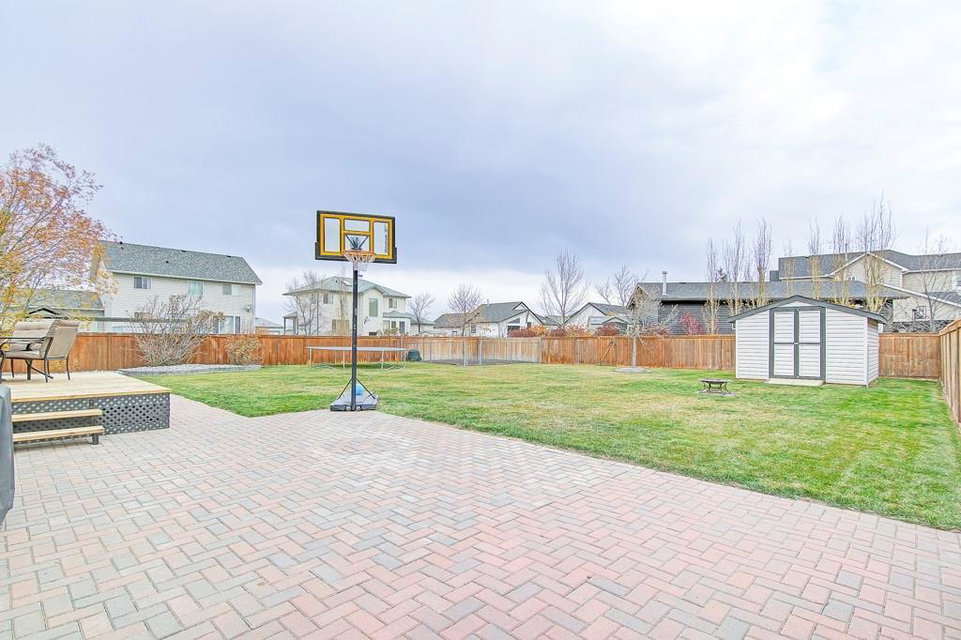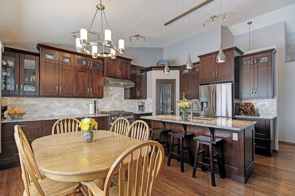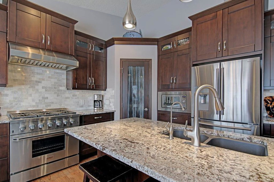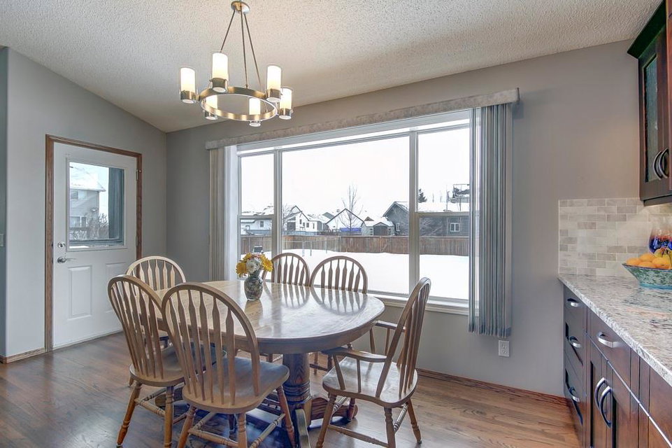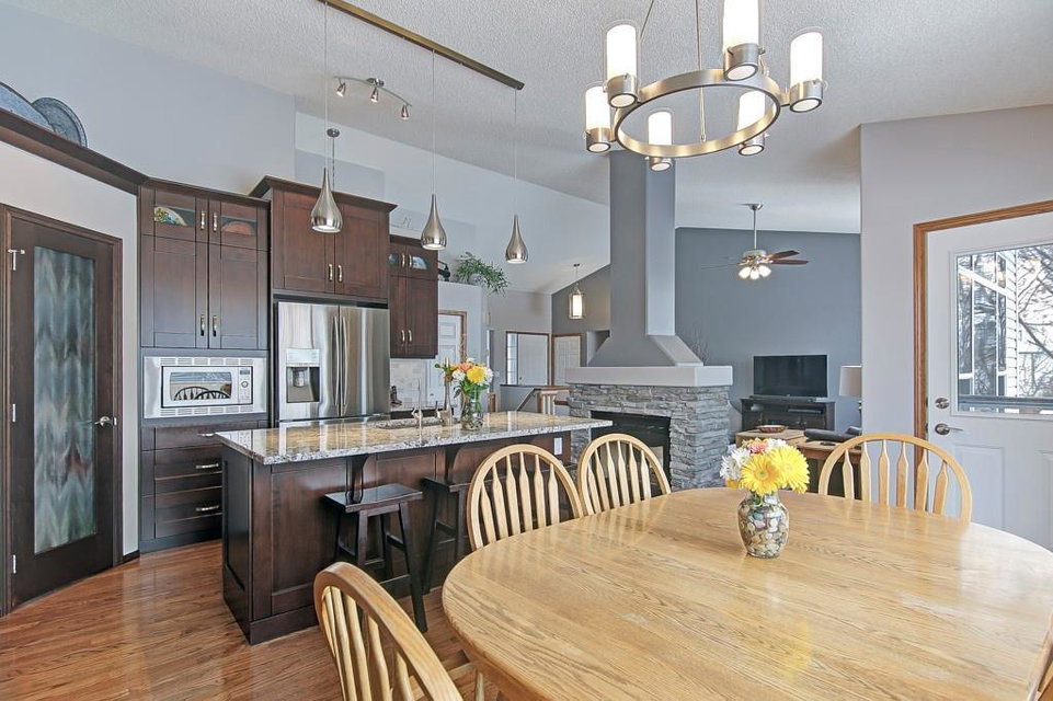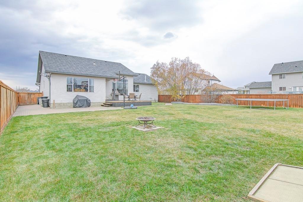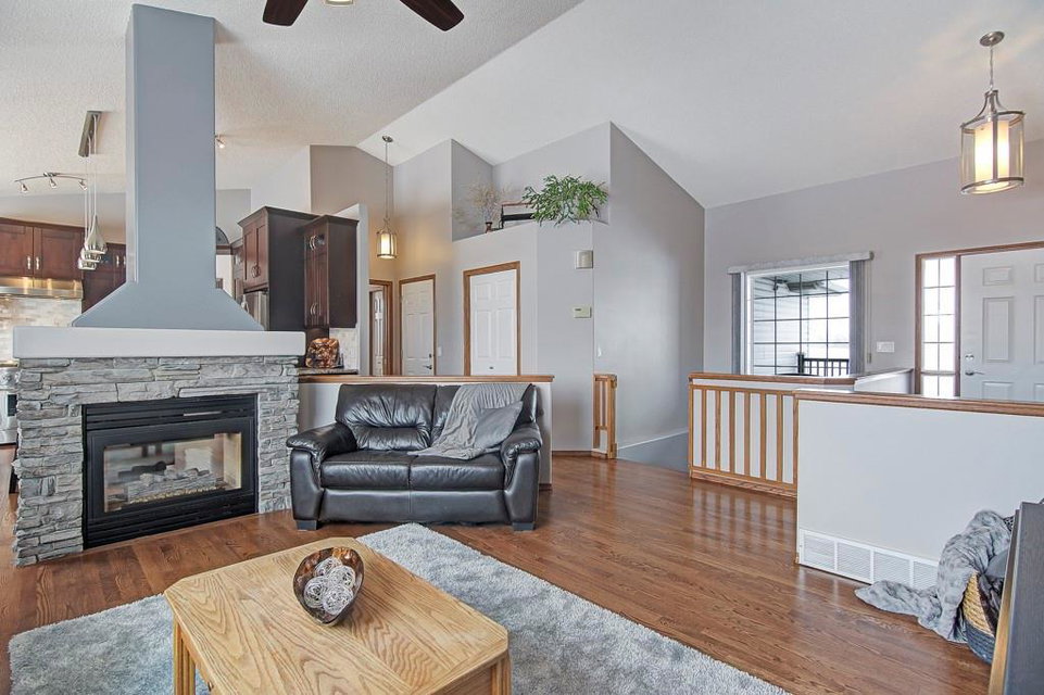 This bungalow shows 10/10! A FRONT VERANDA GREETS YOU… SIT AND ENJOY SUNSETS..across from a green space …Big and bright, this home is sure to impress.Only Minutes to Calgary and Chestermere. HARDWOOD floors throughout main floor. Vaulted ceilings in living room with 2 sided fireplace. GOURMET kitchen with rich cabinetry, STAINLESS steel appliances, GRANITE countertops, corner pantry and centre LARGE ISLAND open to eating nook. Master retreat with 3piece ensuite and walk in closet. 2 more good sized bedrooms, 4 piece bath. MAIN FLOOR laundry area. NEW carpet with transferable 25 year warranty. Lower level is completely developed with LARGE FAMILY room,GAMES AREA & wet bar, additional bedroom, HOME OFFICE, 4 piece bath and storage. Massive backyard with NEWER deck and room for a garden, firepit and more! All this in the great hamlet of Langdon. Pride of ownership shown throughout.