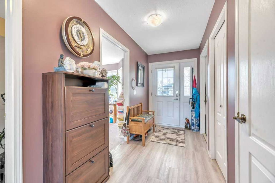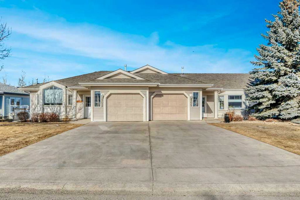 Say hello to carefree living in this beautiful fully finished and air conditioned bungalow in the peaceful and secluded 55+ community of Prince of Peace Village. This villa style duplex is perfectly situated backing onto an Aspen grove and open green space offering both privacy and natural beauty. You’ll love the spacious open concept layout and large windows showcasing your natural surroundings. The well equipped kitchen features bright white cabinets, stainless steel appliances and a handy moveable island. It is open to both the main living area and the dining room. Your primary bedroom is located just off the main living area and also takes advantage of the tranquil view. You can conveniently access the main bath from the primary as well as the main hallway in the cheater ensuite where you’ll enjoy the large easy to enter shower, laundry and plenty of storage. The second bedroom on this level would make a great den or guest room depending on your needs. In the fully finished lower level you’ll find a generous recreation area to set up as a TV room or entertaining space. There is also a 3rd bedroom, den/craft room, half bath, work shop space, cold room and ample storage. The back patio is the ideal place to sit and enjoy nature and maybe catch a glimpse of some local wildlife. A single attached garage with epoxy flooring, a storage bump out and a window will fit a full sized truck. New carpet and vinyl plank flooring throughout the main floor. Living in Prince of Peace Village is more than just a home – it is a lifestyle upgrade. You’re going to love being part of this wonderful community where you can meet friends for coffee at the Manor, take part in community activities, utilize the amenities, enjoy the over 5 kilometres of walking trails including a wildlife pond or take a rest on one of the many benches and just enjoy being immersed in nature. There is even RV parking available near the community centre making this the perfect location for snowbirds who enjoy a lock it and leave it lifestyle in the winter. And all exterior maintenance, lawn care and snow removal are included in the condo fees leaving you more time to do the things you love. Plus you have easy access to Stoney Trail, Hwy 1, shopping, restaurants and more. You’re going to love living here!