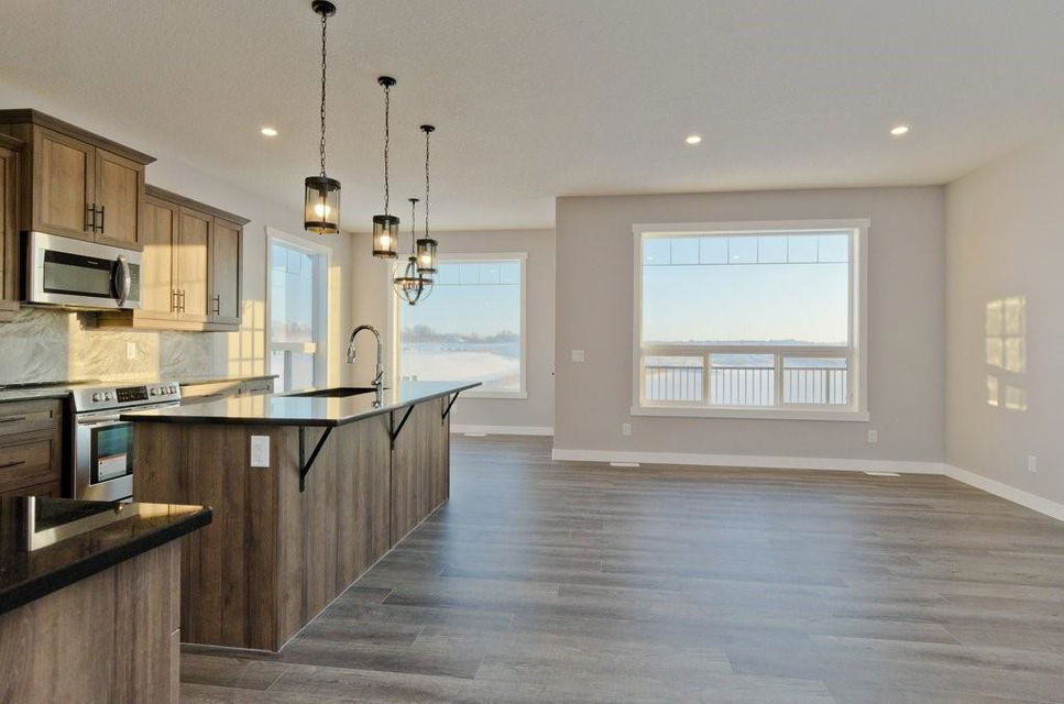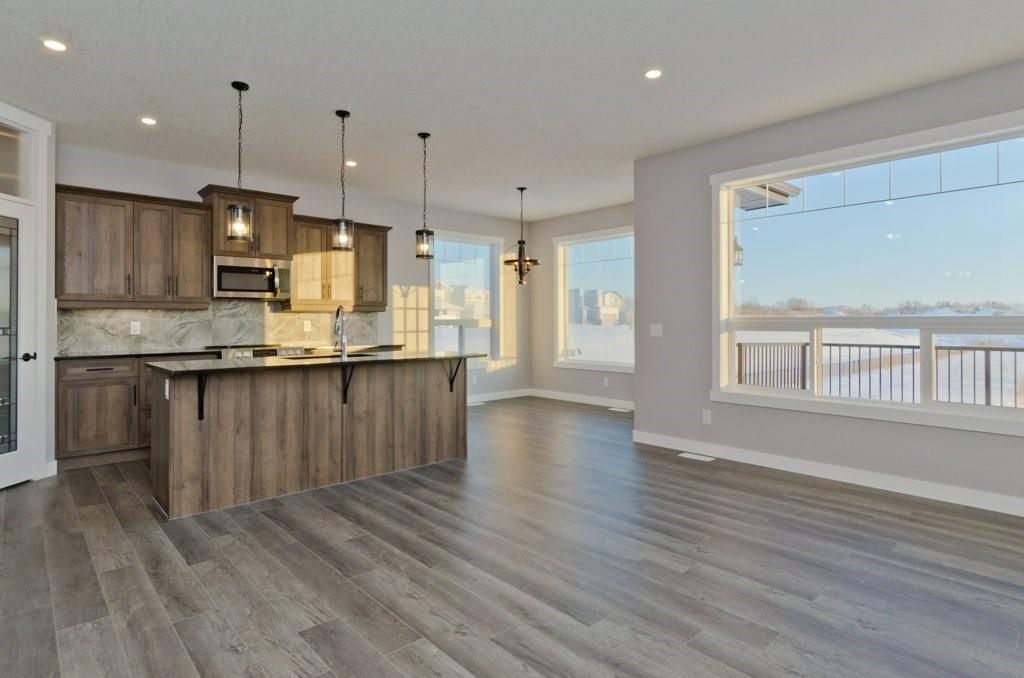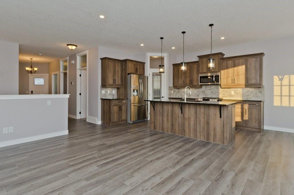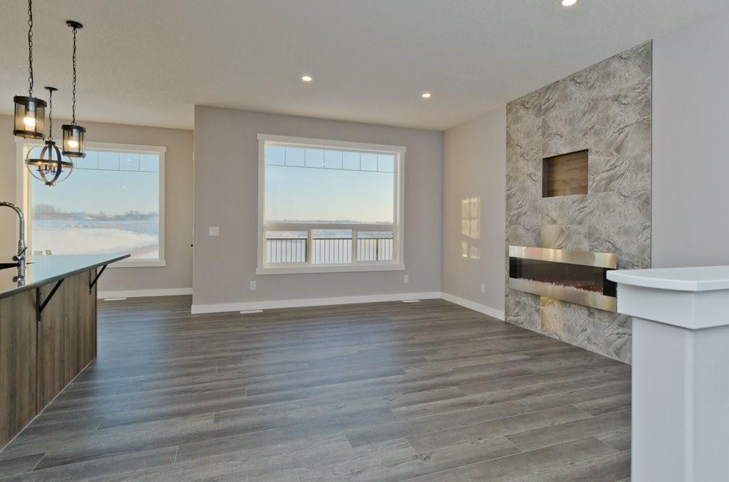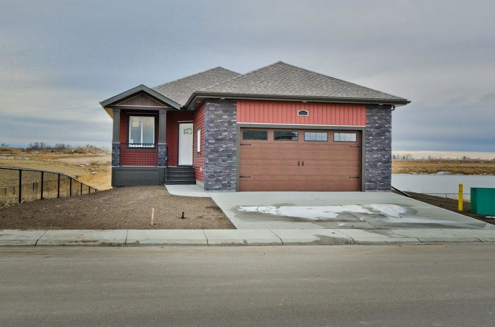 Looking for a DEAL? Welcome to Lakewood in Strathmore! Custom built brand new fully developed walk out bungalow backing the lake situated on a south facing spacious lot. The main floor consists of 1368 sqft with transom windows, barn doors, gourmet kitchen, stainless appliances, spacious living room with fireplace, den/bedroom, loads of storage, large master bedroom with large walk in closet, luxurious bathroom complete with his and hers sinks, free standing soaker tub, spacious shower and access to the south facing deck. 24’x24′ attached garage. The walk out basement is fully finished with 2 bedrooms, family room, bathroom, and storage room. Ready for Possession and bonus the price has been reduced $30,000!