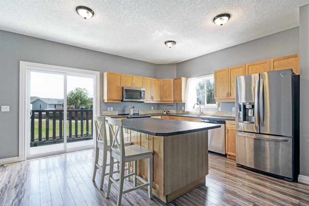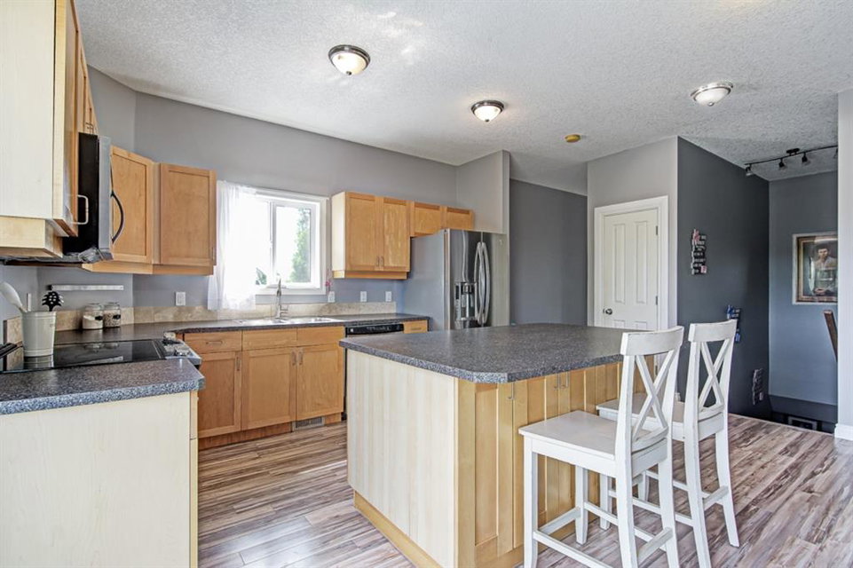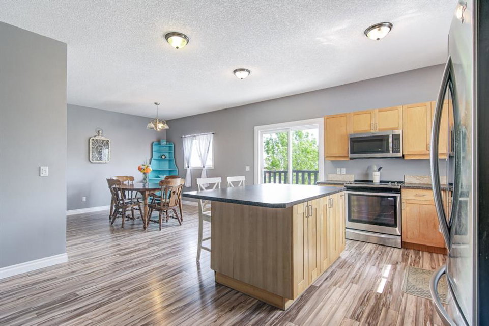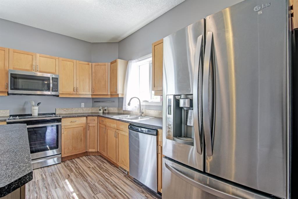 You won’t beat this price for a BUNGALOW with a WALKOUT onto GREENSPACE and on a PIE LOT! Great location, tucked away in a quiet cul de sac. Freshly painted, NEW DECK Aug 2020, NEW SHINGLES Aug 2020. Inside you will find neutral colors and lots of room for the growing family in this 4 bedroom bungalow. The heart of this home is the massive kitchen with loads of cupboards and island overlooking a large eating area. Perfect for large gatherings, families who home school, or entertain. 9ft ceilings, STAINLESS appliances, patio doors leading to a large deck. Fully developed WALK OUT with cozy FIREPLACE in lower level allows for lots of extra living space. Come see.