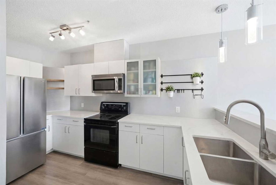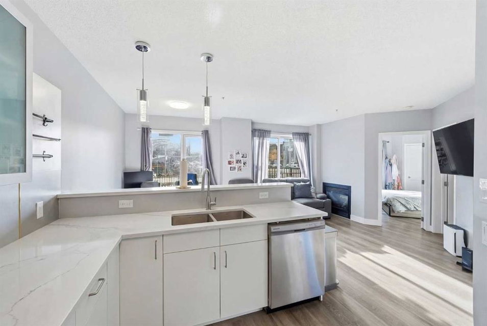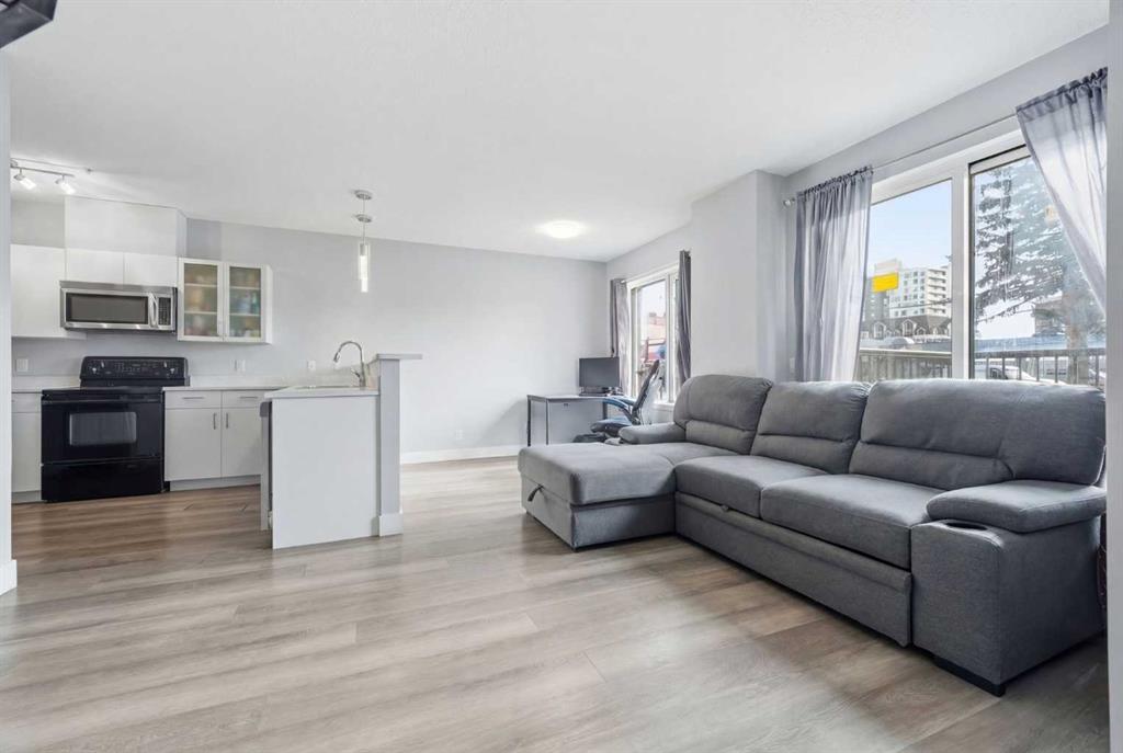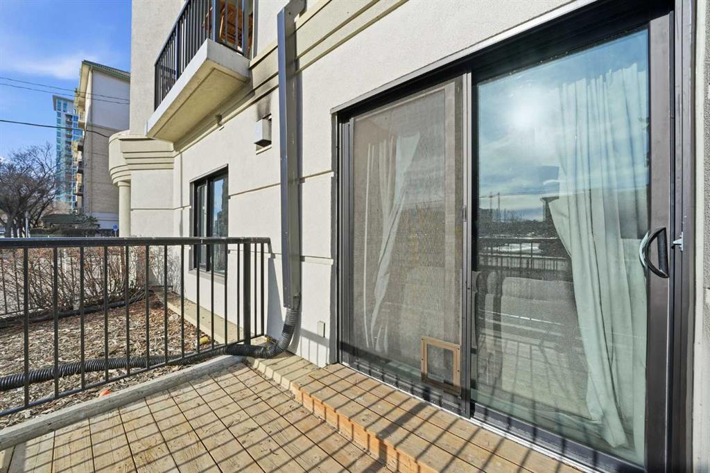 Welcome to this beautifully updated, south-facing ground-level condo in the heart of downtown Calgary — a rare offering with no neighbors on either side, as the only ground-floor unit in the building. Enjoy incredible natural light all day with two south-facing living room windows, a south-facing bedroom window, and a south-facing private balcony. The open-concept layout features stylish LVP flooring, quartz countertops, stainless steel appliances, in-suite laundry, and a cozy double-sided fireplace connecting the living space and bedroom. This well-maintained unit offers modern finishes throughout and a smart layout that maximizes both comfort and functionality — perfect for professionals, investors, or first-time buyers. Located just steps from BMO Centre and the iconic Calgary Stampede Grounds, you’ll love being close to transit, dining, entertainment, and everything downtown has to offer. Well-priced, move-in ready, and in a fantastic central location — this is urban living at its best.