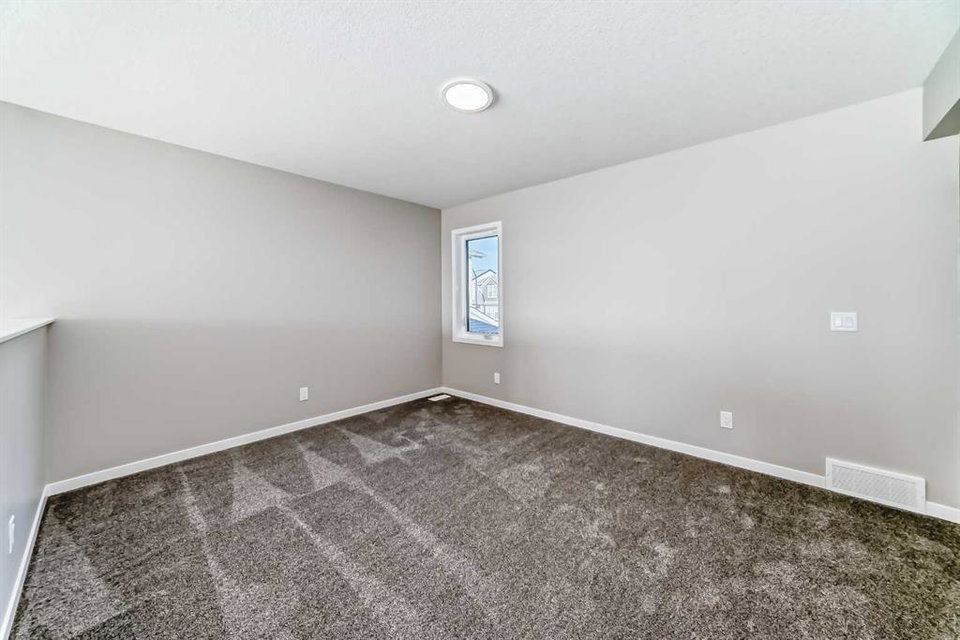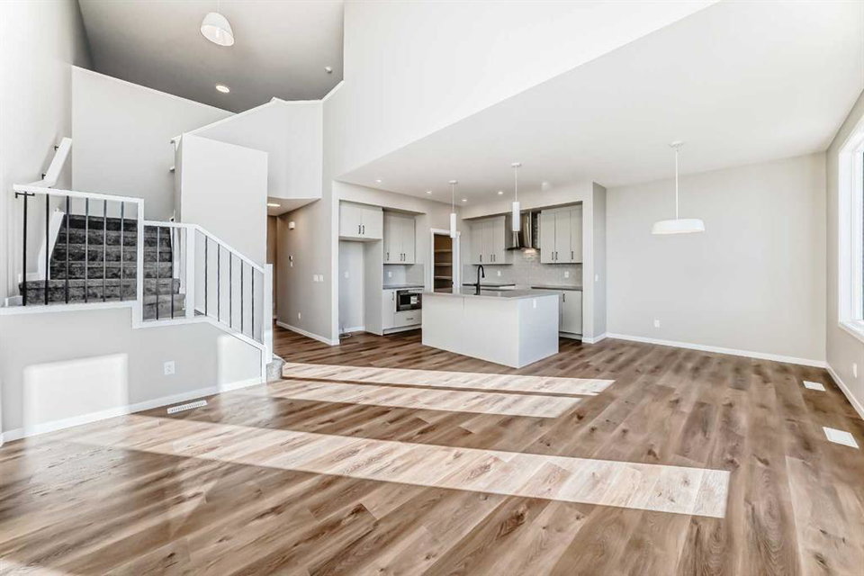 Welcome to 1089 Sawgrass Link NW in the vibrant community of Sawgrass Park — a stunning Grada model by Hopewell Residential offering over 2,100 sq ft of thoughtfully designed living space and ready for immediate possession. From the moment you arrive, the curb appeal stands out with durable Hardie Board siding, modern lines, and a traditional lot with a desirable south-facing backyard — perfect for maximizing natural light and enjoying summer evenings on the future deck (complete with BBQ gas line already installed). Inside, the layout is both functional and impressive. The main floor features luxury vinyl plank flooring, knockdown ceiling texture, spindle railing, and a rare main floor bedroom with a full bathroom, ideal for guests, multi-generational living, or a private home office. The heart of the home is the upgraded kitchen, beautifully appointed with quartz countertops, contemporary cabinetry, stylish backsplash, and a spacious island overlooking the dining area and dramatic two-storey living room. The soaring open-to-below space is anchored by a sleek Allusion electric fireplace, creating a striking focal point while oversized windows flood the home with natural light. Upstairs, you’ll find three additional bedrooms including a spacious primary retreat featuring a walk-in closet and a luxurious 5-piece ensuite with dual sinks, a deep soaker tub, and a separate shower. A generous upper family room provides the perfect flex space for movie nights, a kids’ play area, or a quiet reading lounge. Convenient upper laundry completes the level. The undeveloped basement with a separate side entrance offers incredible future potential — whether you envision additional living space, a home gym, or secondary suite possibilities (subject to municipal approval and permitting). Built by Hopewell Residential, a builder known for quality craftsmanship and thoughtful design, this home blends modern finishes with a family-friendly floorplan in one of Airdrie’s most exciting new communities. If you’ve been searching for a move-in-ready home with space to grow, smart design, and future flexibility — this is it.